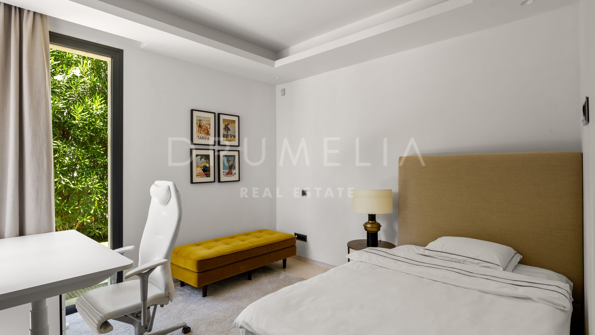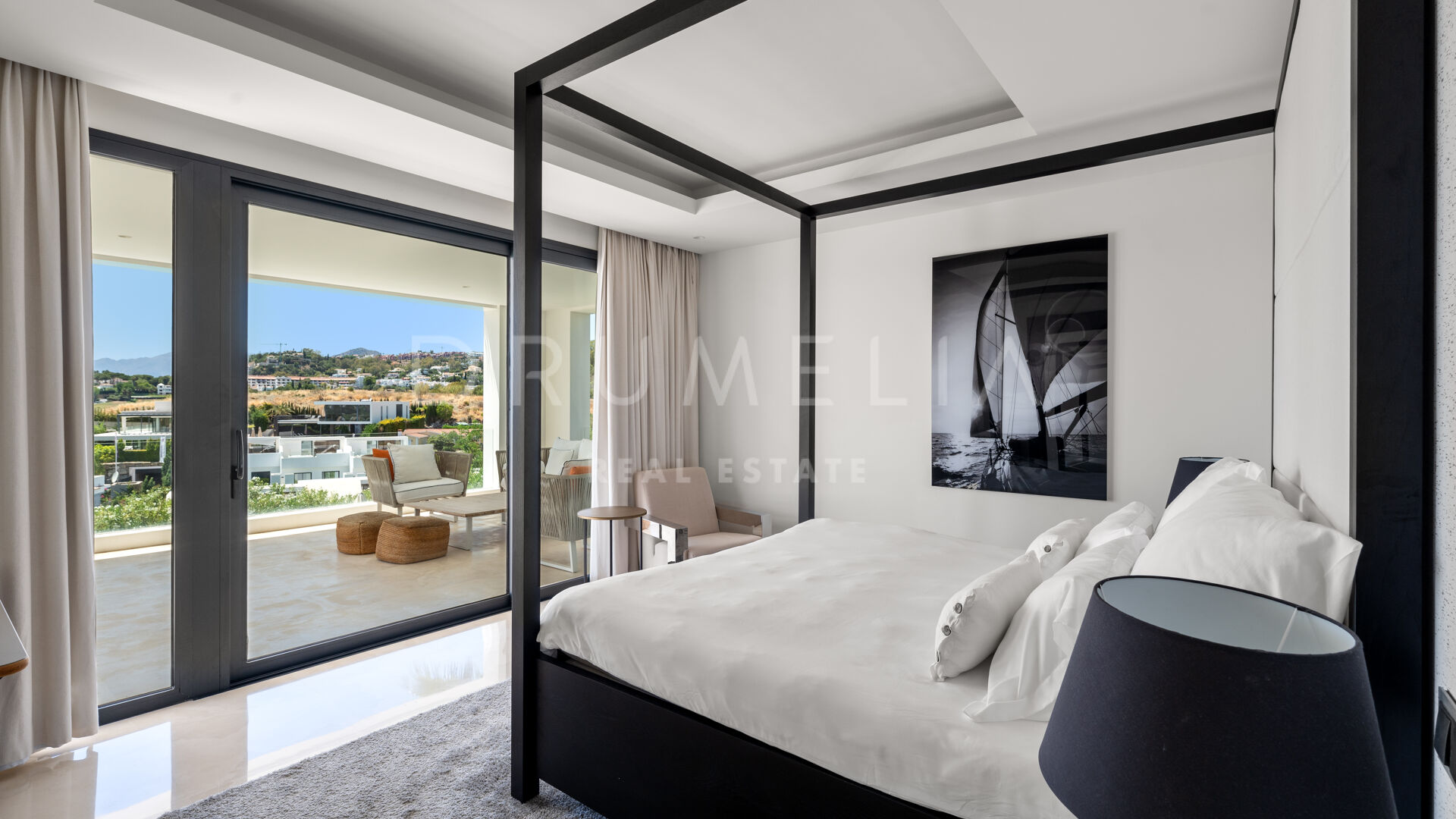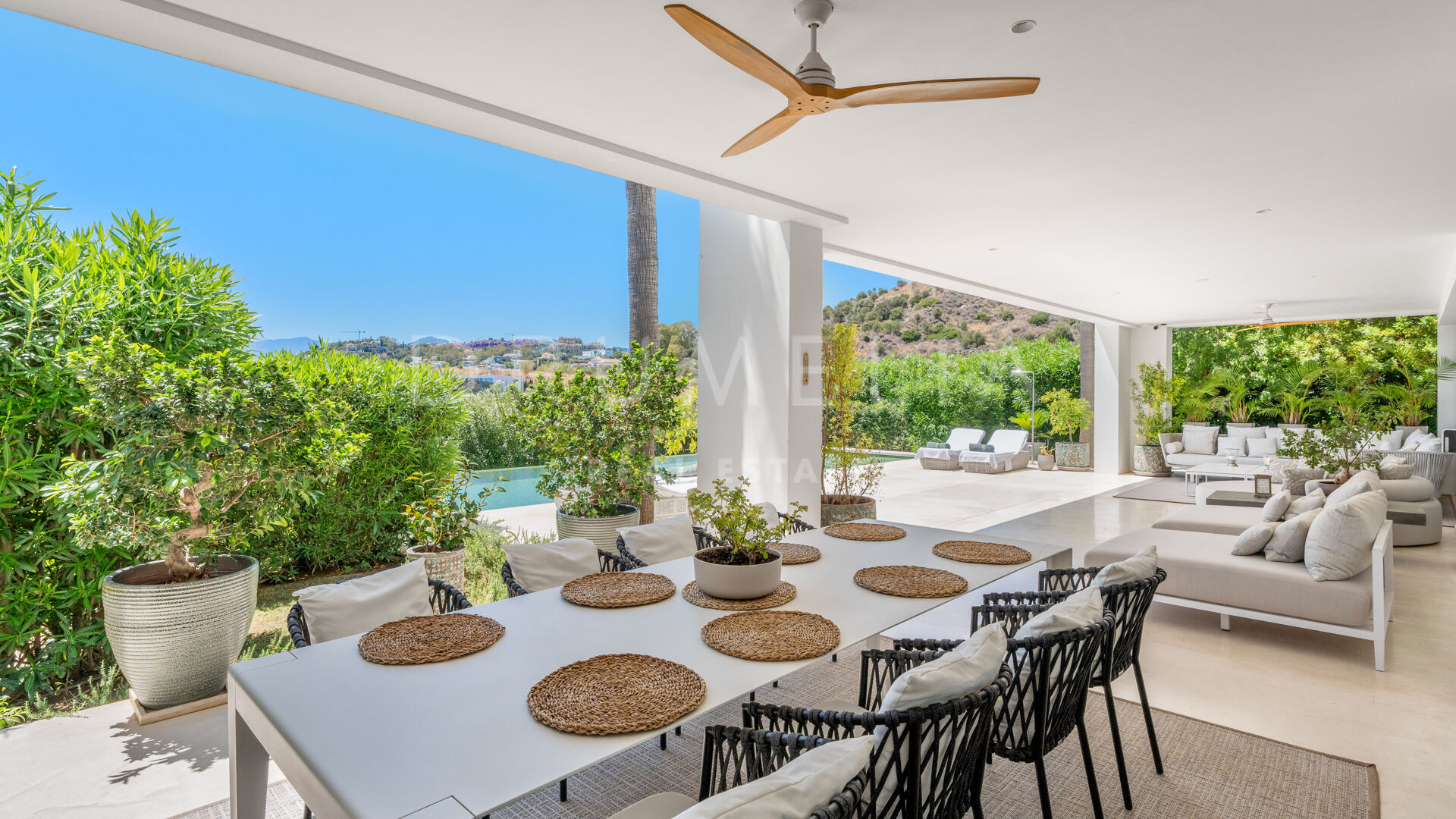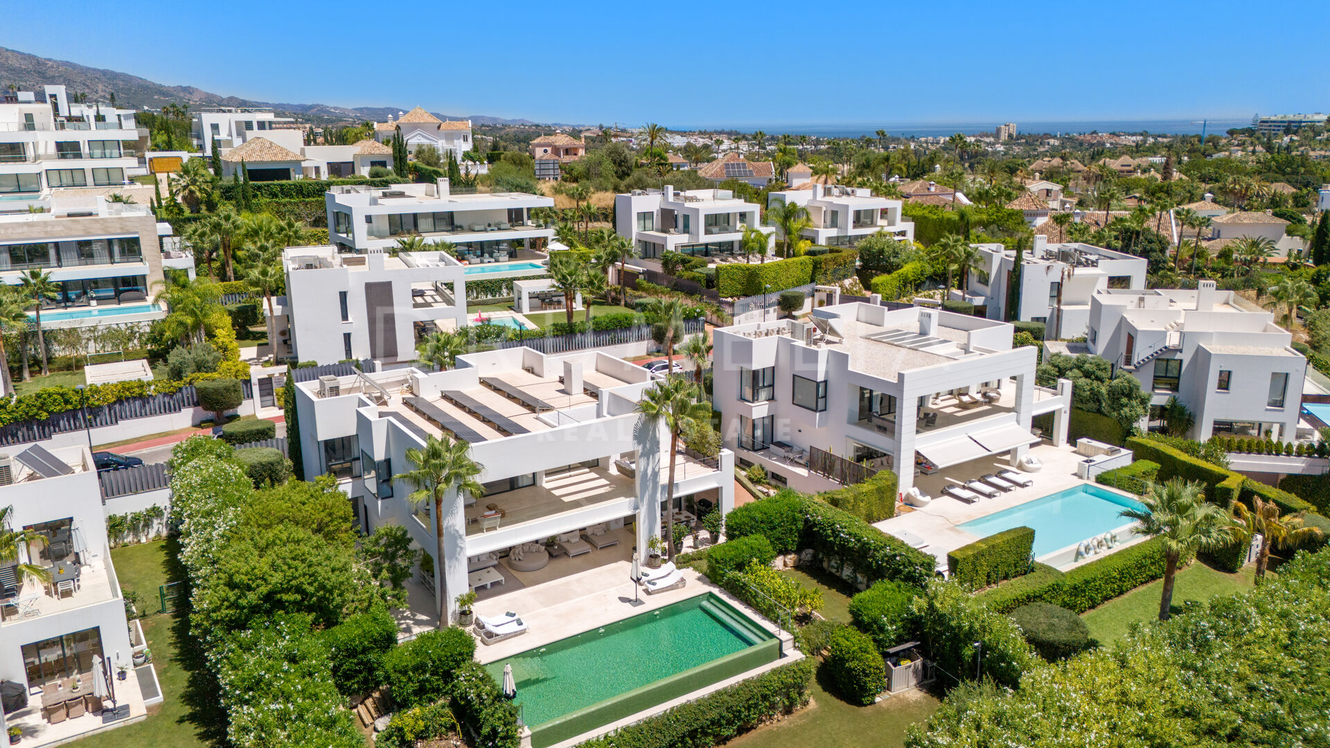 Odkryj wykwintną willę z 5 sypialniami położoną w prestiżowej, zamkniętej społeczności Urb Los Olivos, położonej w samym sercu Nueva Andalucia. Ta luksusowa willa oferuje zapierające dech w piersiach panoramiczne widoki na otaczający krajobraz, pięknie zagospodarowane ogrody i lśniące morze. Położona na podwyższonej działce nieruchomość po mistrzowsku łączy nowoczesne elementy architektoniczne ze śródziemnomorskim urokiem, dzięki czemu jest idealnym sanktuarium dla wymagających nabywców poszukujących ekskluzywności, spokoju i luksusu.