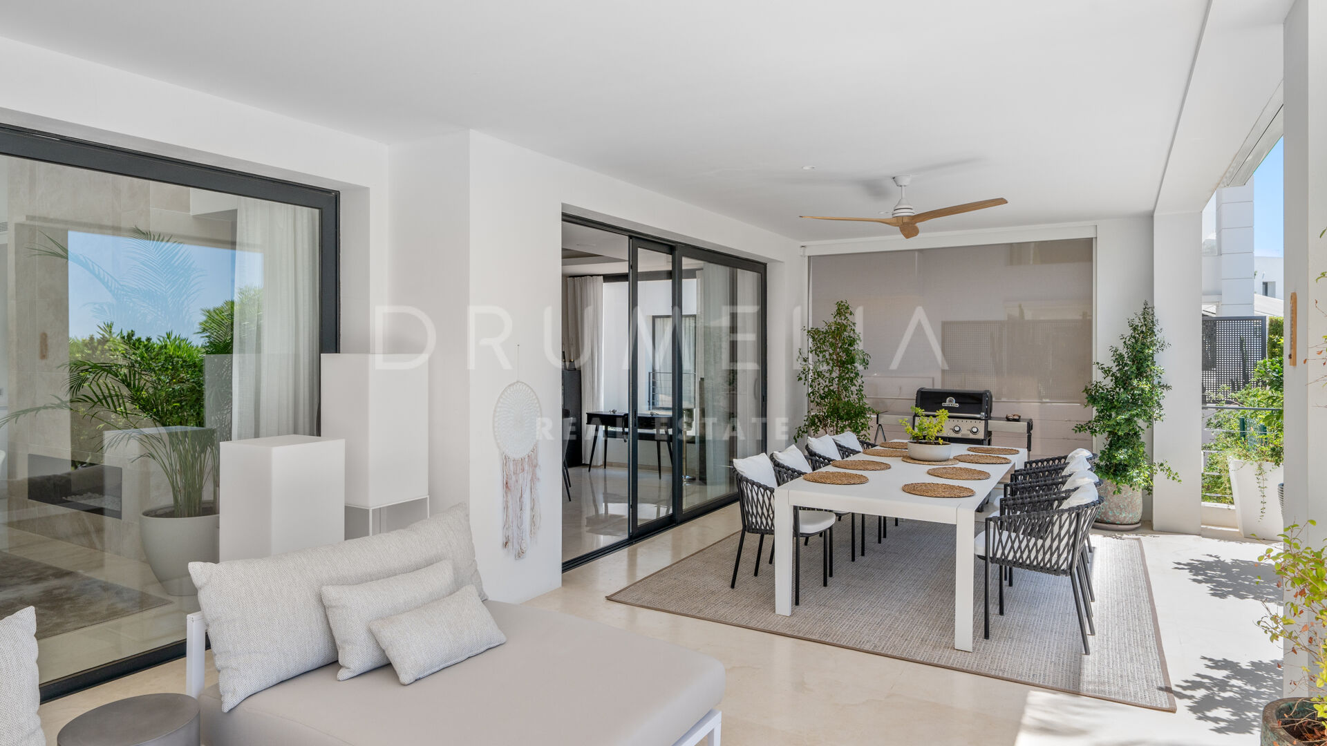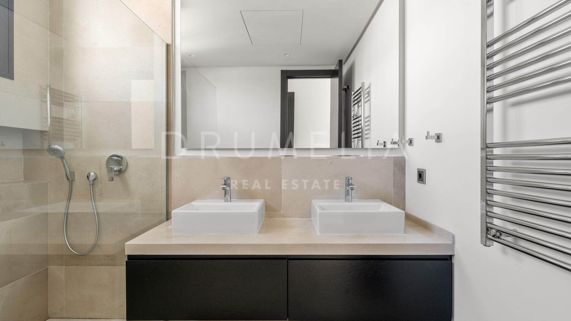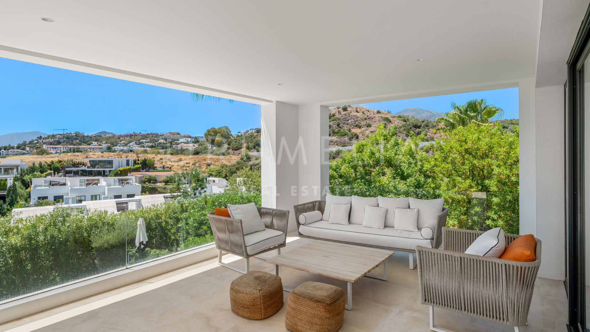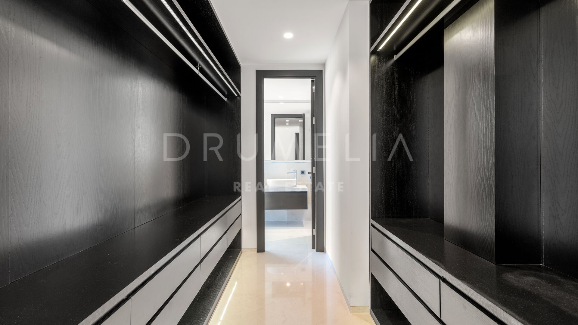 Odkryj wykwintną willę z 5 sypialniami położoną w prestiżowej, zamkniętej społeczności Urb Los Olivos, położonej w samym sercu Nueva Andalucia. Ta luksusowa willa oferuje zapierające dech w piersiach panoramiczne widoki na otaczający krajobraz, pięknie zagospodarowane ogrody i lśniące morze. Położona na podwyższonej działce nieruchomość po mistrzowsku łączy nowoczesne elementy architektoniczne ze śródziemnomorskim urokiem, dzięki czemu jest idealnym sanktuarium dla wymagających nabywców poszukujących ekskluzywności, spokoju i luksusu.
