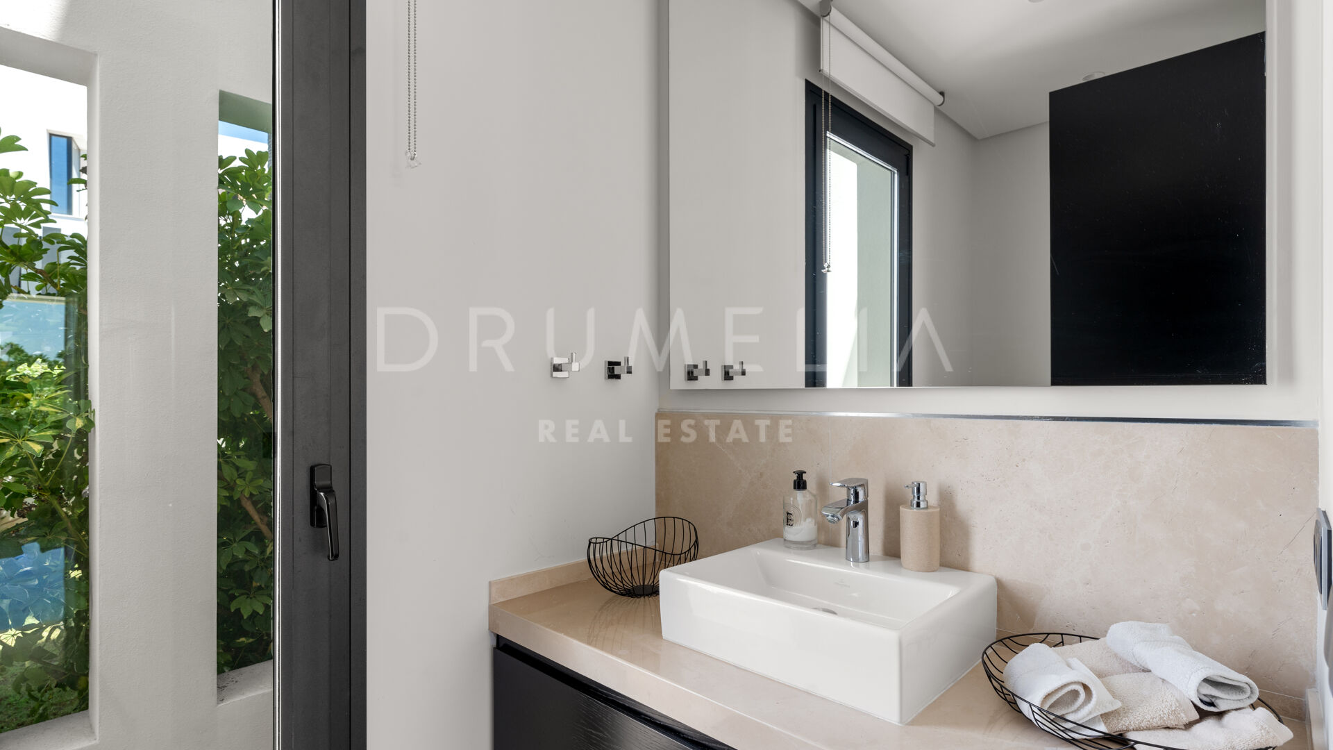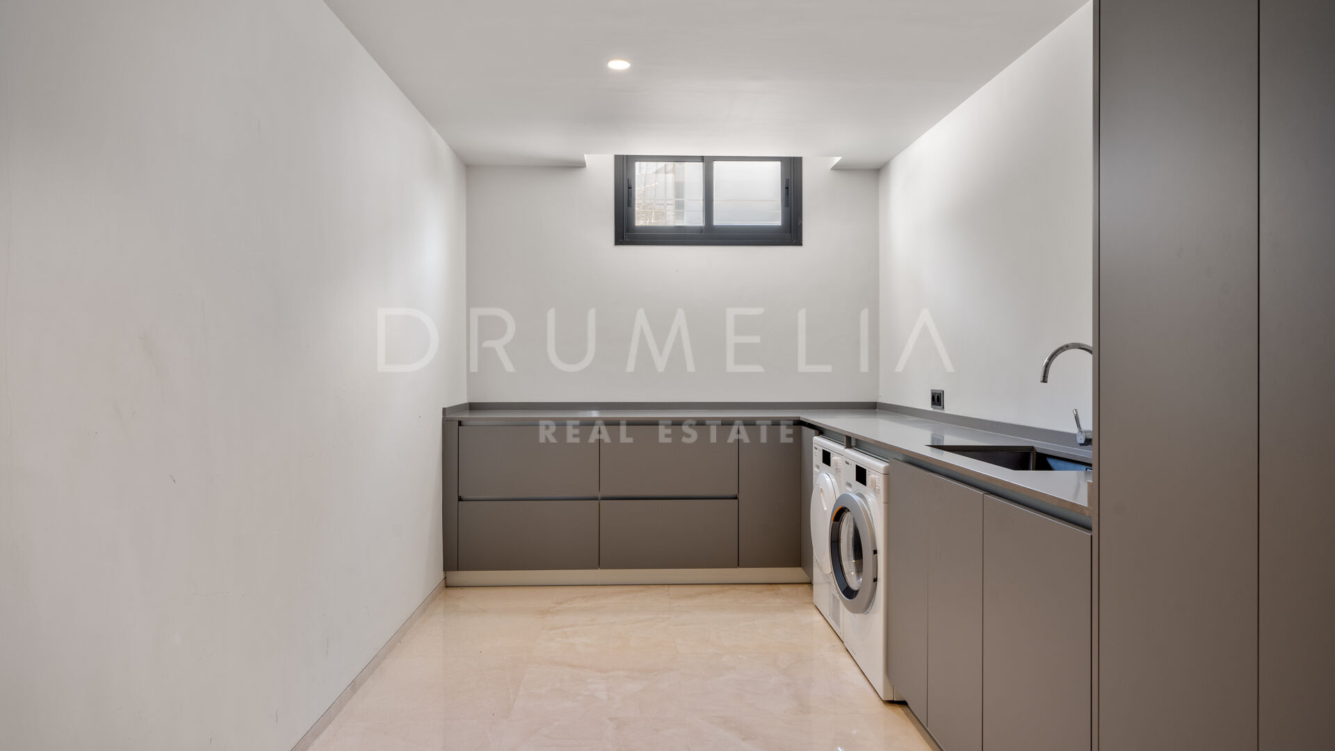 Położona na zamkniętym osiedlu willa zapewnia większą prywatność i bezpieczeństwo. Nowo wybudowana, charakteryzuje się nowoczesnym designem ze współczesnymi elementami, zapewniając świeże i aktualne wrażenia z życia. Bliskość placów zabaw dla dzieci i renomowanych pól golfowych w połączeniu z włączeniem pokoju gier sprawia, że jest to idealna rezydencja rodzinna.