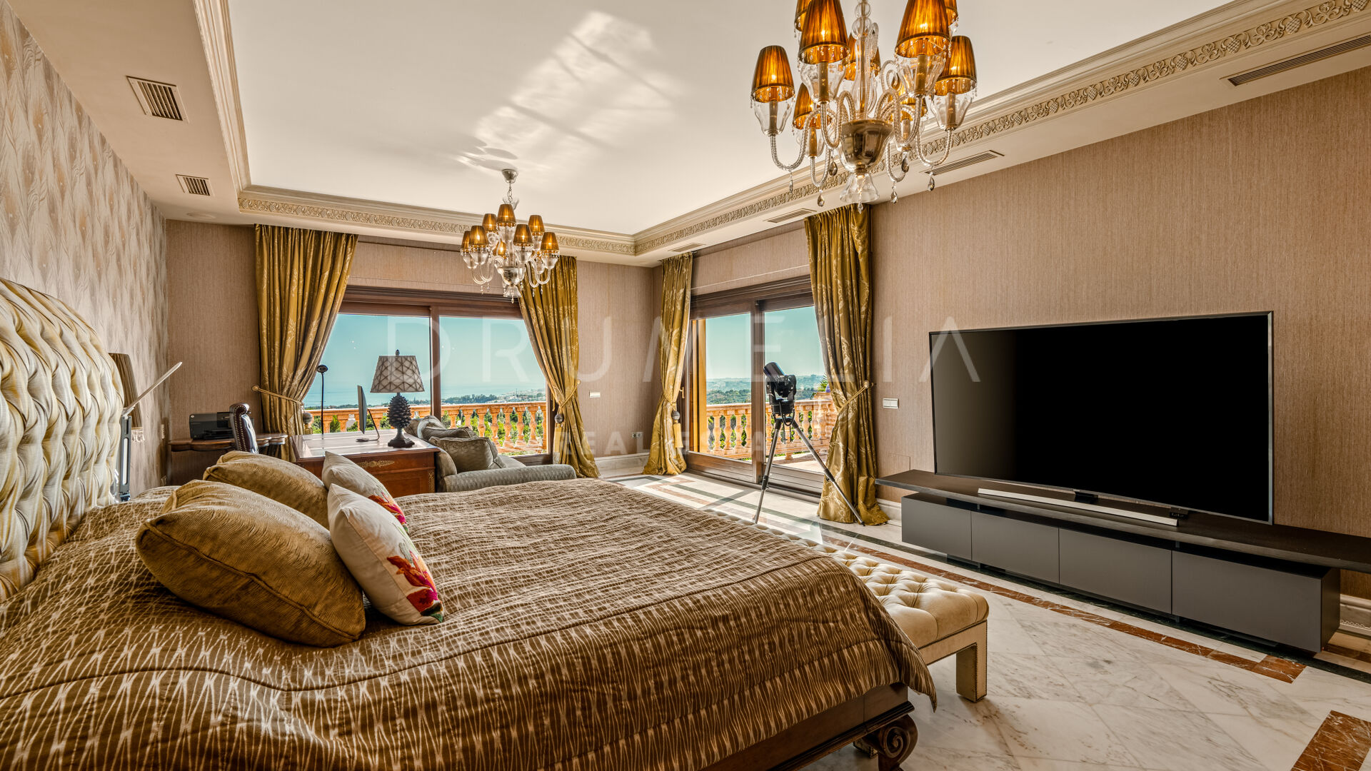 Ta nieruchomość, orientacja południowy zachód, posiada następujące udogodnienia: klimatyzacja, piwnica na wino, widok na morze, widok na gory, kominek, marmurowe podlogi, jacuzzi, piwnica, pom.gospodarcze, alarm, balkon, zadaszone tarasy, wbudowane szafy, ogrodzony kompleks mieszkalny, winda, stan dobry i grill.