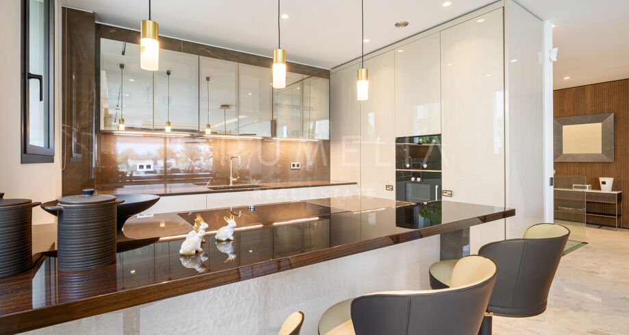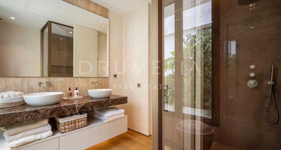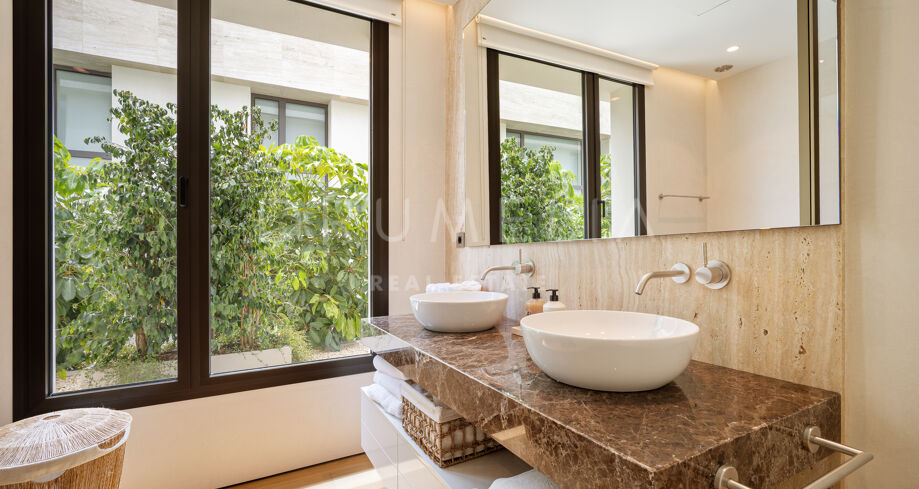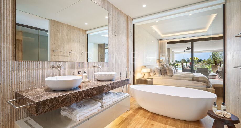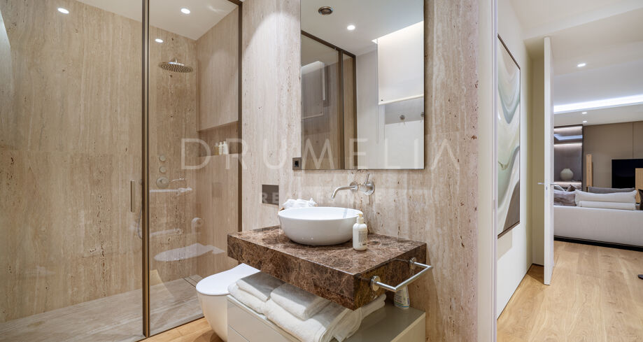 W całym apartamencie widoczna jest jakość wykonania – od łazienek wykończonych marmurem trawertynowym i starannie dobranych kamieni, po designerskie meble oraz selekcję wyposażenia renomowanych włoskich marek. To nieruchomość, która harmonijnie łączy design, komfort i styl życia w bezpiecznym otoczeniu, pełnym udogodnień, zaledwie kilka chwil od najbardziej rozpoznawalnych miejsc w Marbelli.