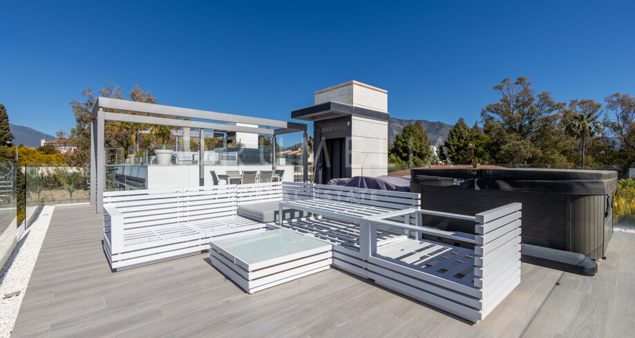 Luksusowa nowoczesna willa przy plaży z prywatnym basenem i jacuzzi na dachu, Marbella Golden Mile