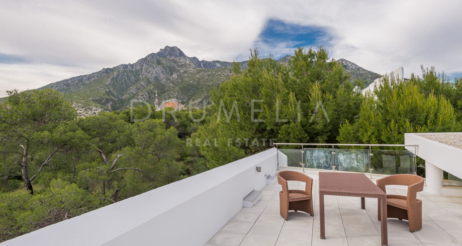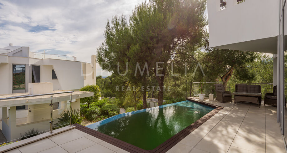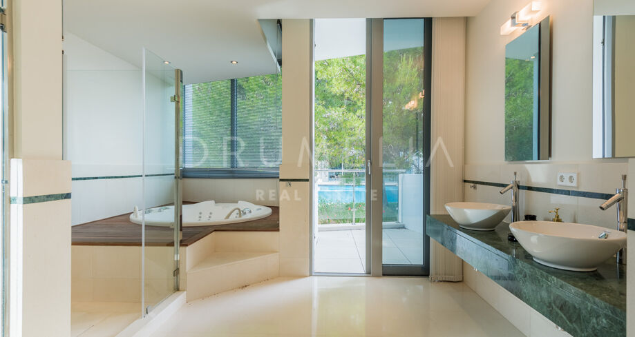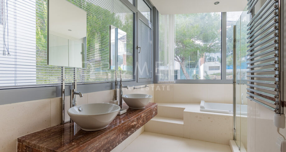 Willa na sprzedaż w Meisho Hills, Marbella Golden Mile z 5 sypialnie, 5 łazienki, 5 pokoje z łazienką, 1 toaleta i posiada basen, garaż i ogród (osiedlowy). Wymiary: 860m² wybudowano, 390m² wnętrze i 89m² taras.
