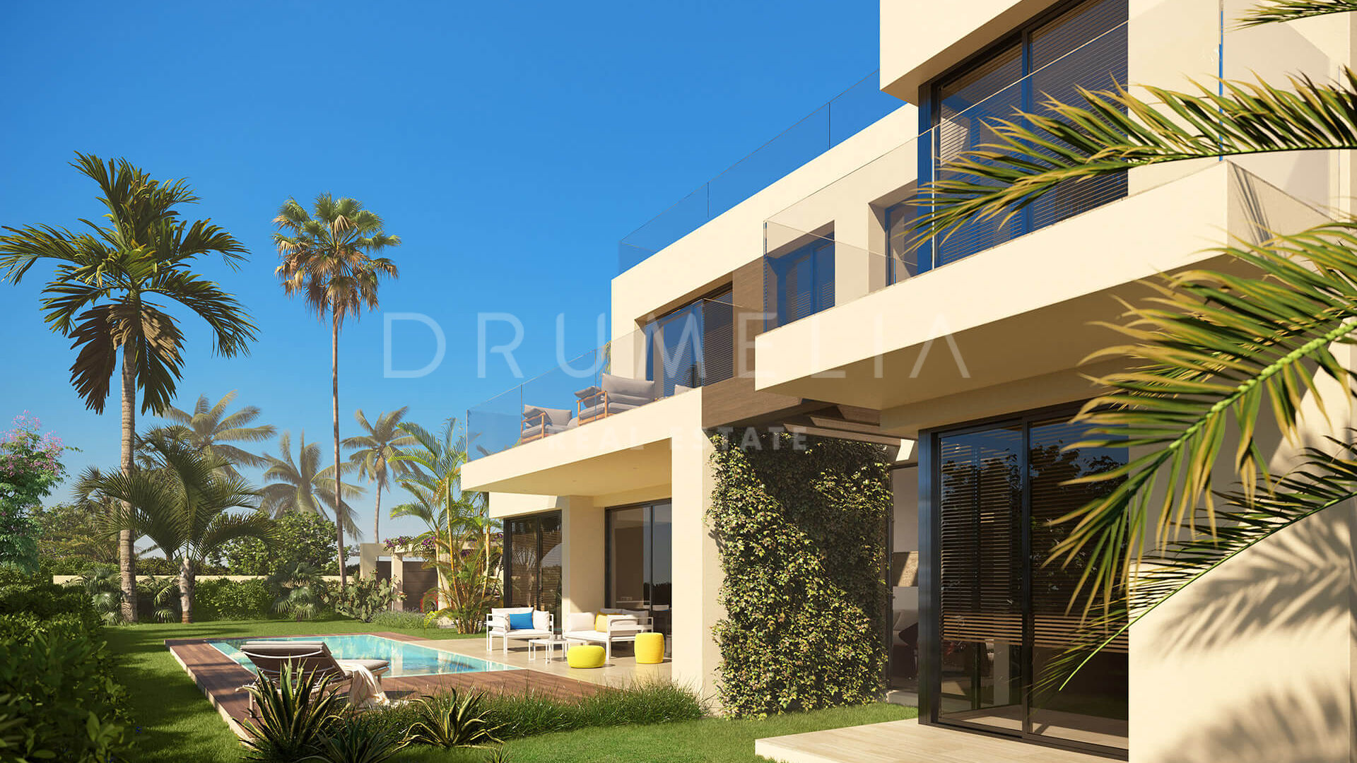 Willa na sprzedaż w Monte Biarritz, Estepona Wschodnia z 3 sypialnie, 3 łazienki, 3 pokoje z łazienką, 2 toalety, wbudowany 2024 i posiada basen (wlasny), garaż (podjazd) i ogród (wlasny). Wymiary: 418m² wybudowano, 645m² działka i 65m² taras.