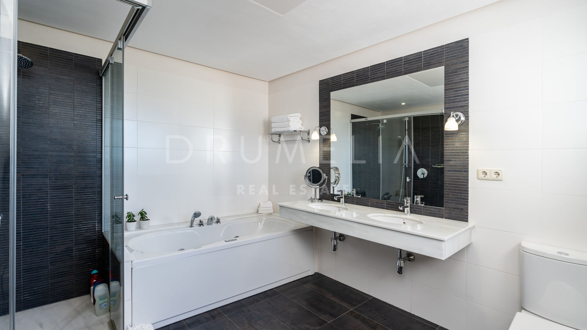 Ta nieruchomość, orientacja południowy wschód, posiada następujące udogodnienia: prywatny taras, po stronie gor, salon, klimatyzacja, ogrzewanie podłogowe (w łazience), blisko miasta, widok na morze, kuchnia w pełni wyposażona, widok na gory, kominek, otwarty taras, piwnica, drzwi szklane, pralnia, otwarta kuchnia, zadaszone tarasy, opcjonalnie meble, wbudowane szafy, ogrodzony kompleks mieszkalny, stan bardzo dobry i obsluga ochroniarzy 24h.