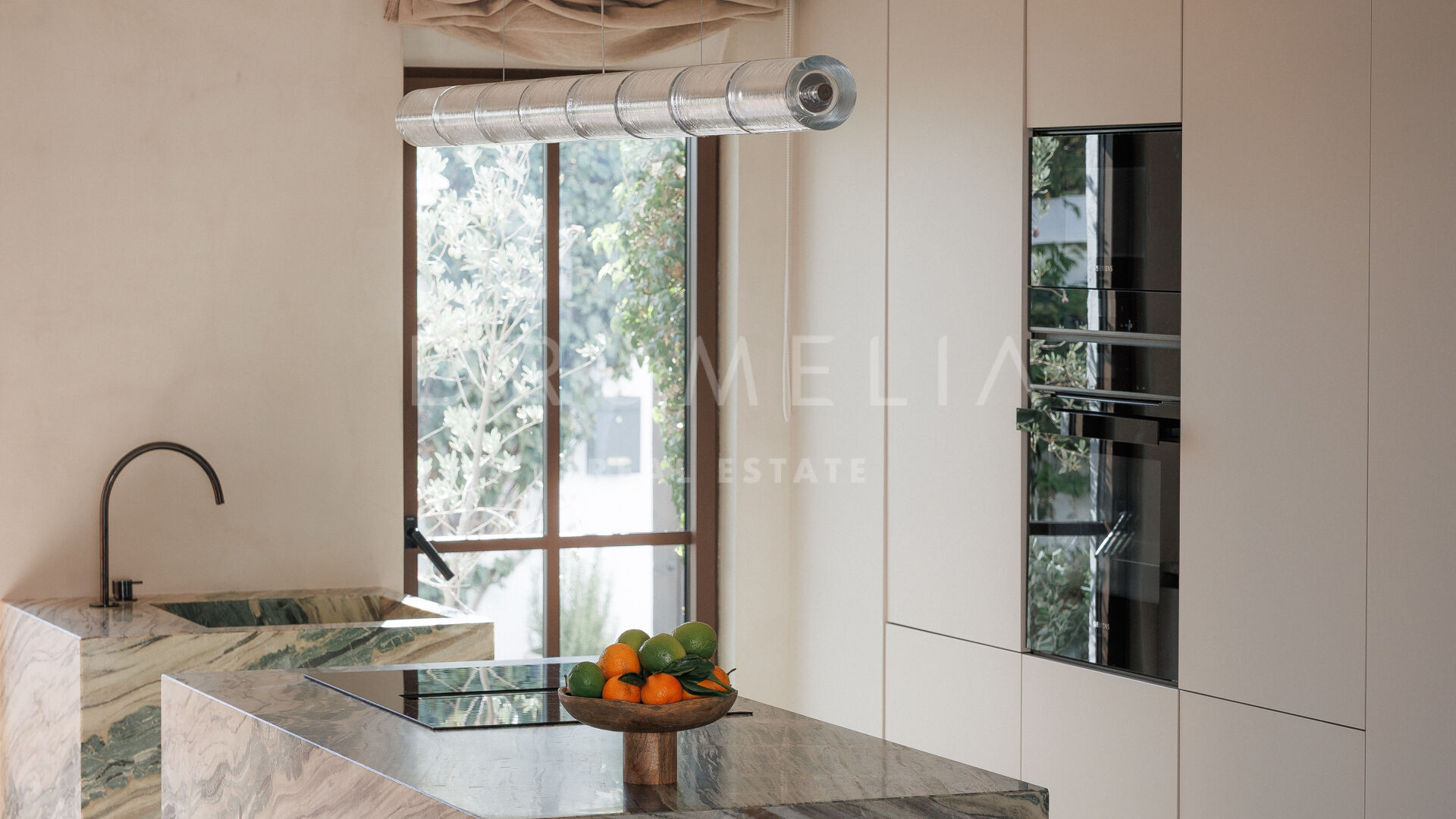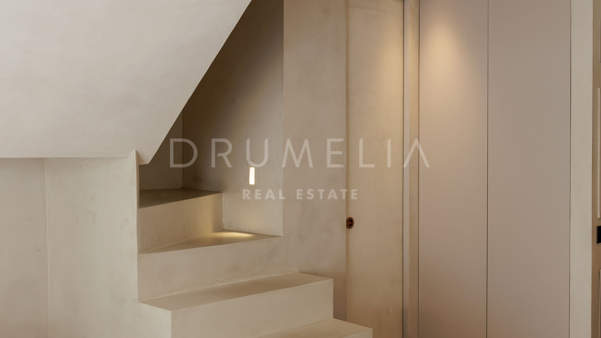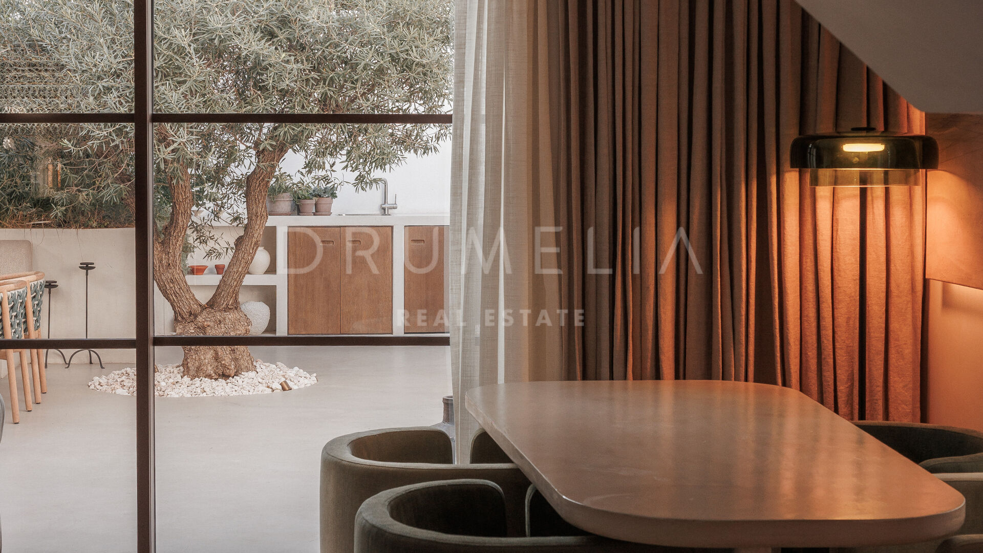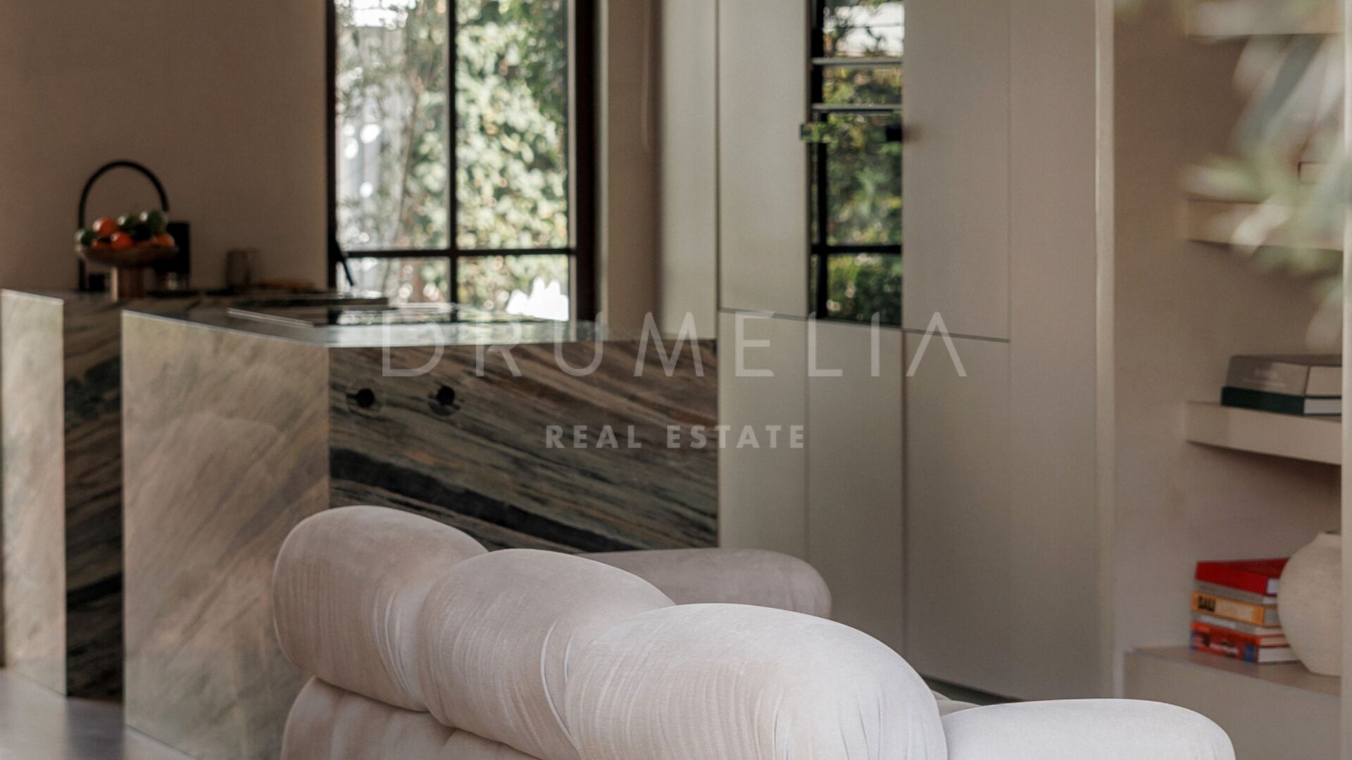 Ta pięknie odnowiona willa w zabudowie bliźniaczej w stylu śródziemnomorskim położona jest w samym sercu Nueva Andalucía w Marbelli, na terenie bezpiecznego i prestiżowego osiedla. Nieruchomość została całkowicie odnowiona w 2024 roku i łączy ponadczasowy design z nowoczesnym luksusem, wysokiej jakości materiałami oraz meblami na wymiar.