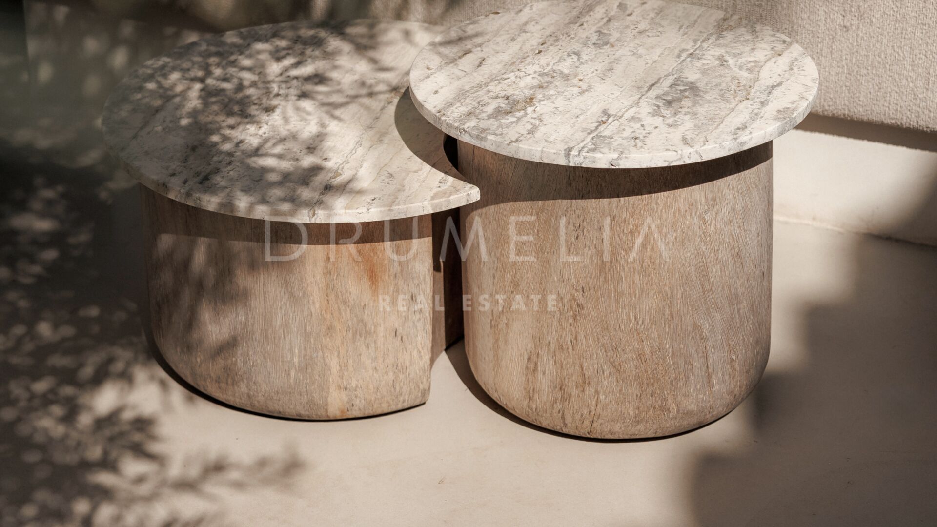 Willa oferuje 2 przestronne sypialnie, każda z prywatną łazienką wykończoną marmurem, a także toaletę dla gości. Przy powierzchni zabudowy 89 m² wnętrze zostało starannie zaprojektowane, aby maksymalnie wykorzystać światło, komfort i funkcjonalność. Drzwi od podłogi do sufitu oraz ukryty system przesuwnych okien otwierają całą strefę dzienną na taras, tworząc harmonijną przestrzeń typu indoor–outdoor.
