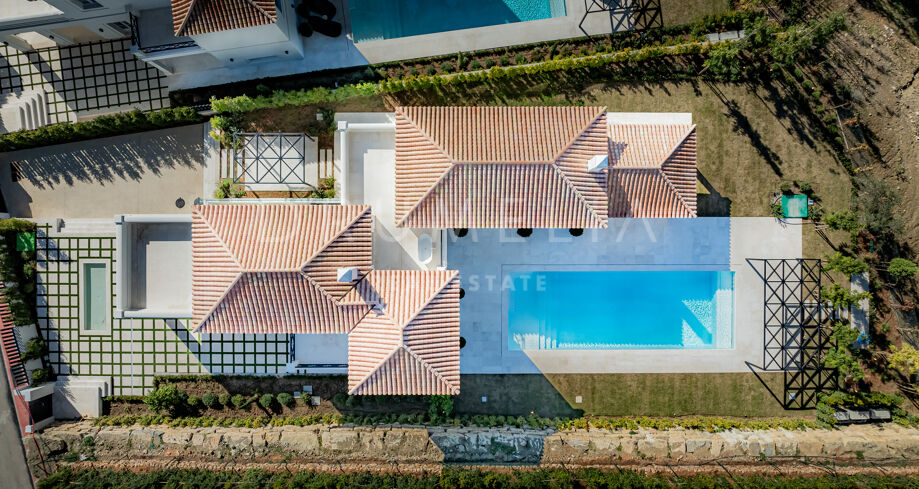 Zaprojektowana jako osobista oaza, willa posiada dziedziniec stylizowany na południe Francji, ozdobiony drzewami oliwnymi i lawendą, tworząc wyrafinowaną atmosferę kurortu. Nieruchomość uzupełniają wypielęgnowane ogrody, miejsca do siedzenia na świeżym powietrzu, zadaszone werandy i duży basen, oferując idylliczne miejsce do rozrywki i relaksu pod słońcem.