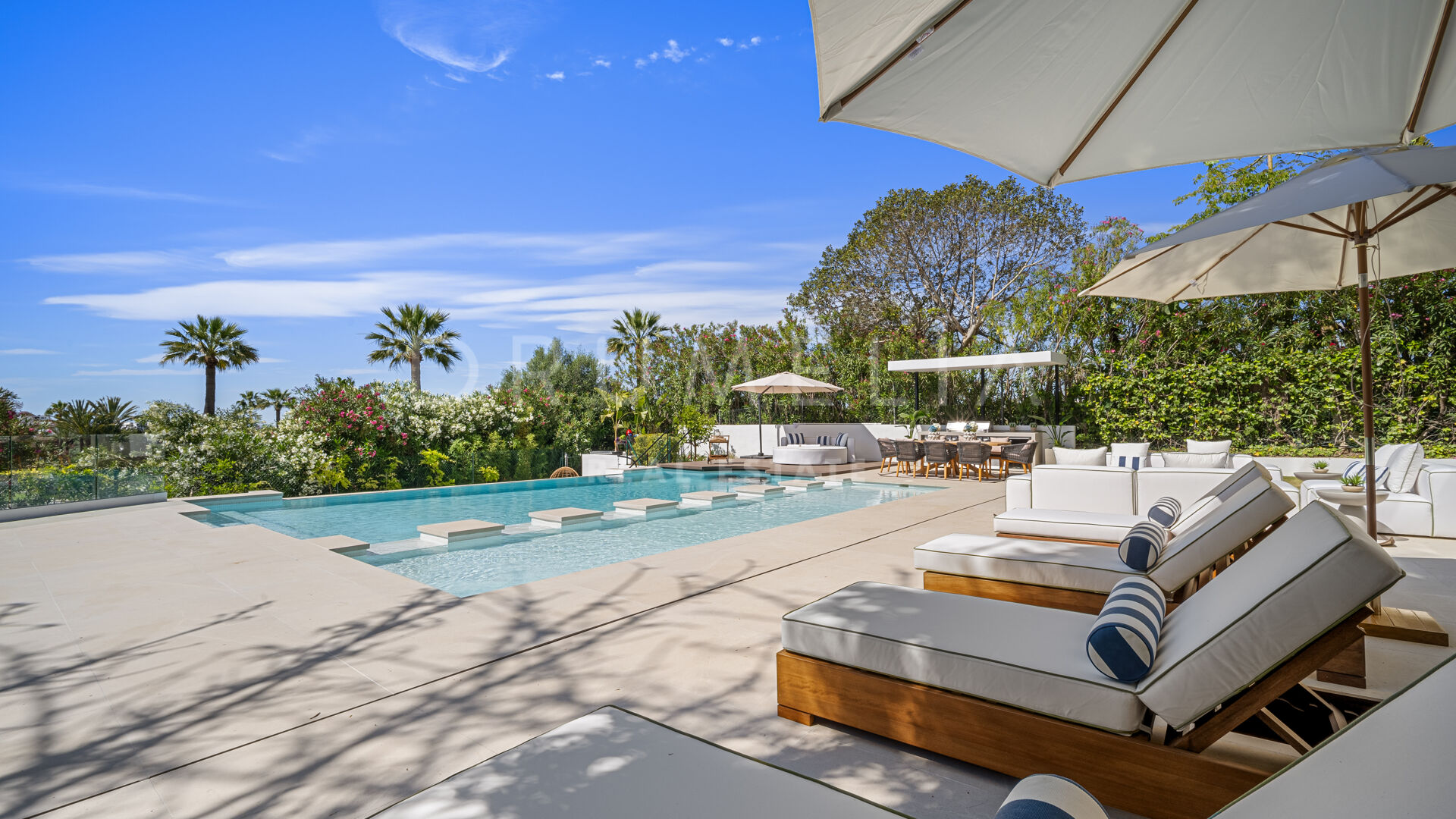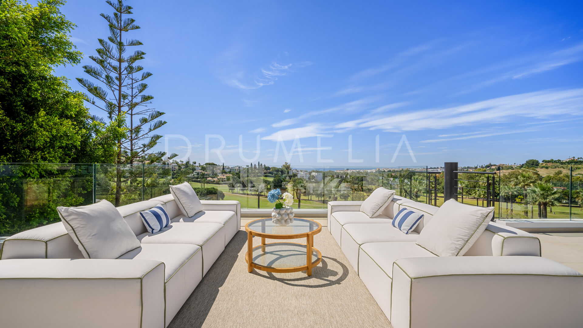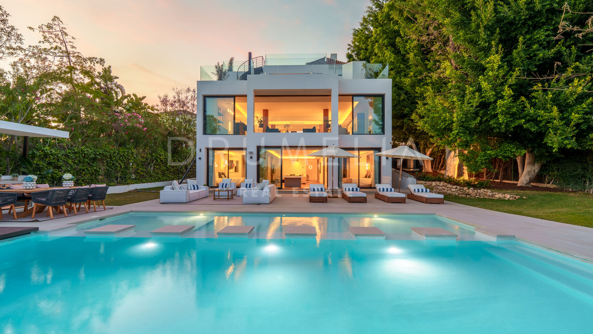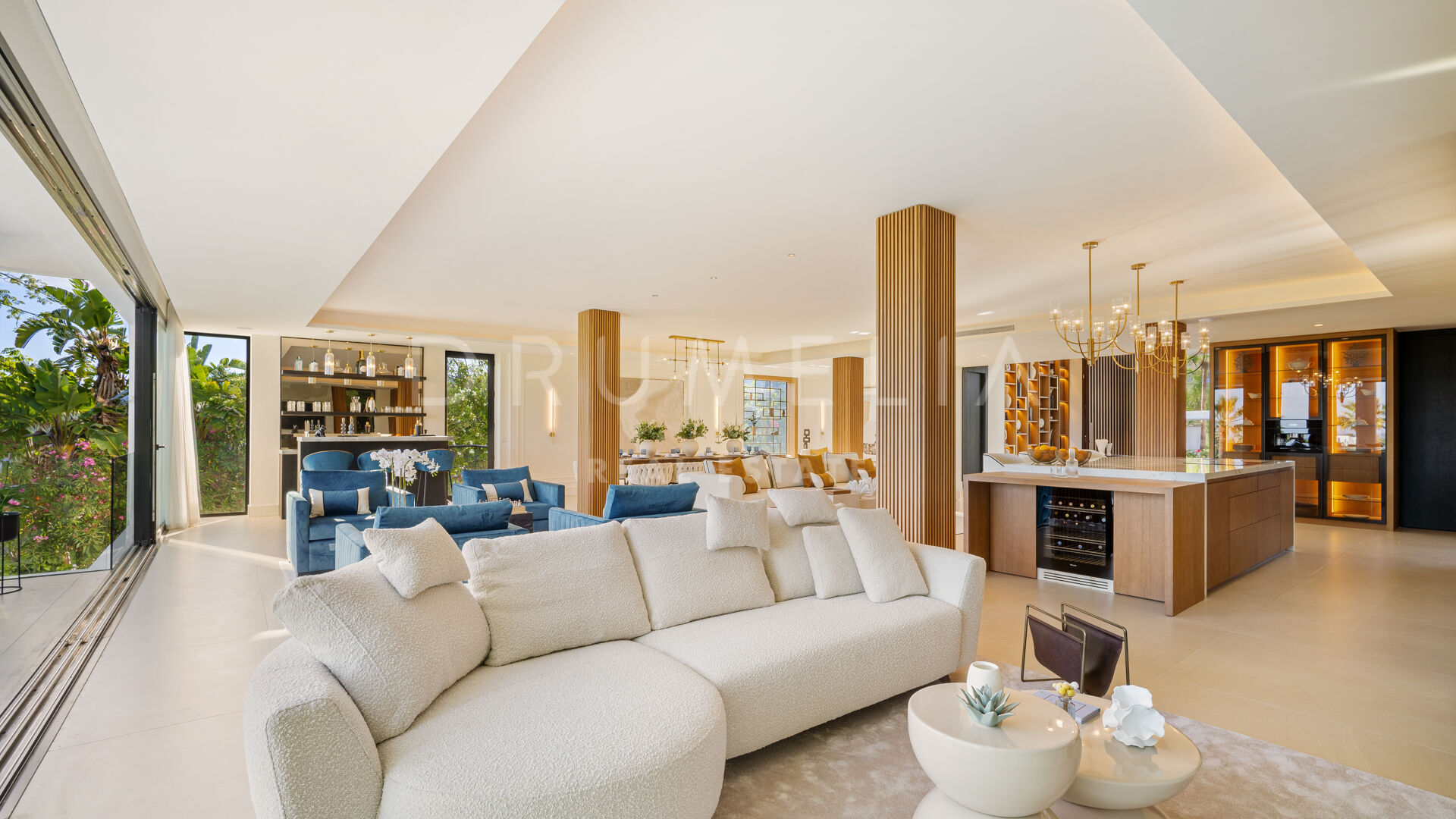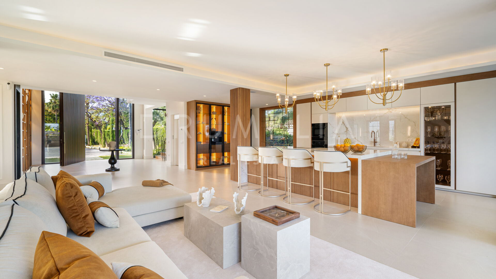 Ta wyjątkowa willa zachwyca unikalną architekturą i najwyższą jakością wykonania. Położona na prywatnej działce w strzeżonej urbanizacji, oferuje zapierające dech w piersiach widoki na pole golfowe Los Naranjos. Znajduje się zaledwie kilka minut od restauracji, centrów sportowych, plaży i Puerto Banús.