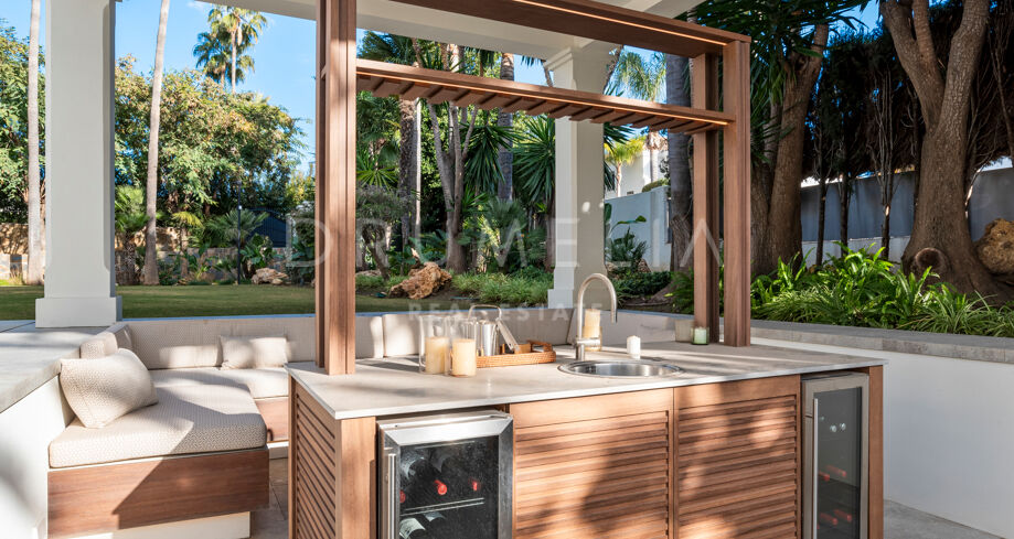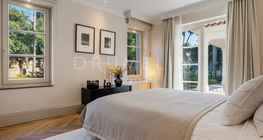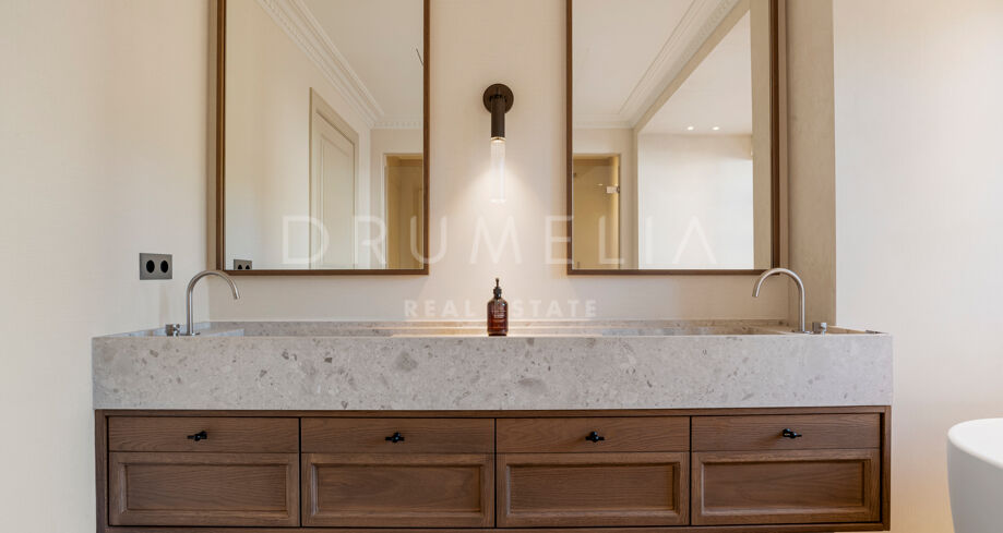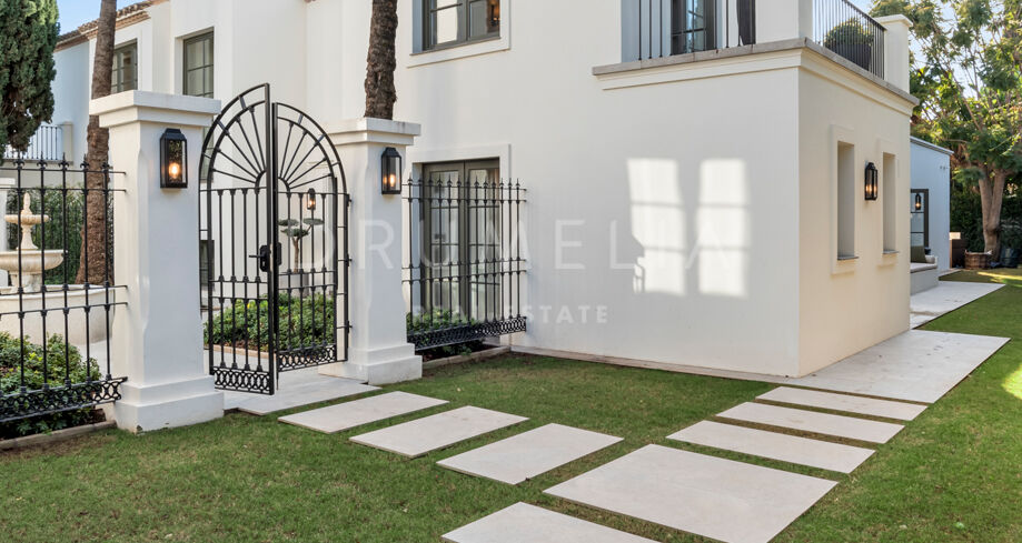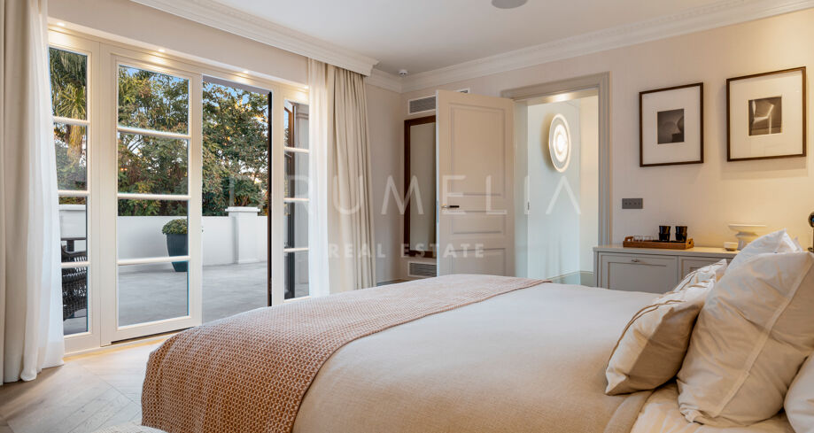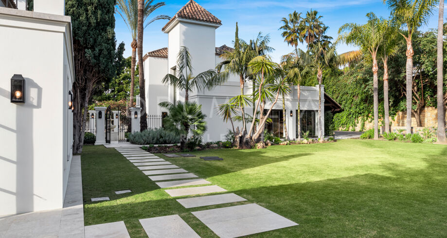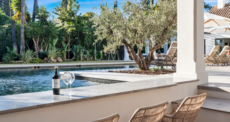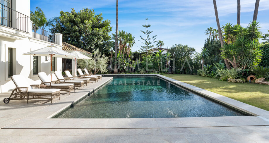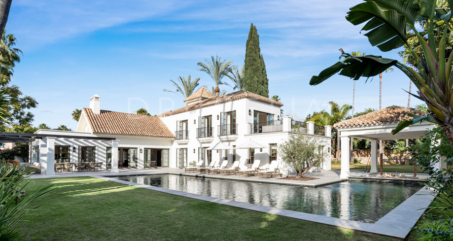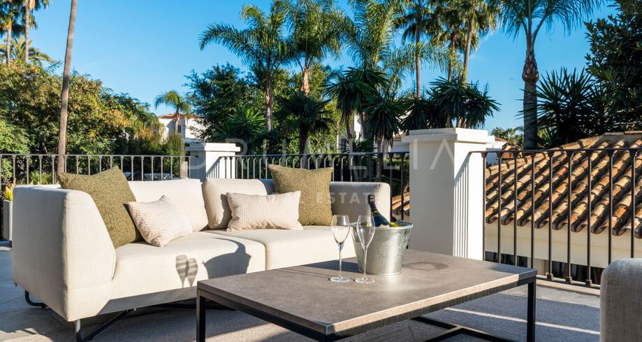 W pełni odnowiona willa z 5 sypialniami, prywatnym spa, siłownią, rozległymi tarasami i zagospodarowanym ogrodem z basenem w Nueva Andalucía, Marbella