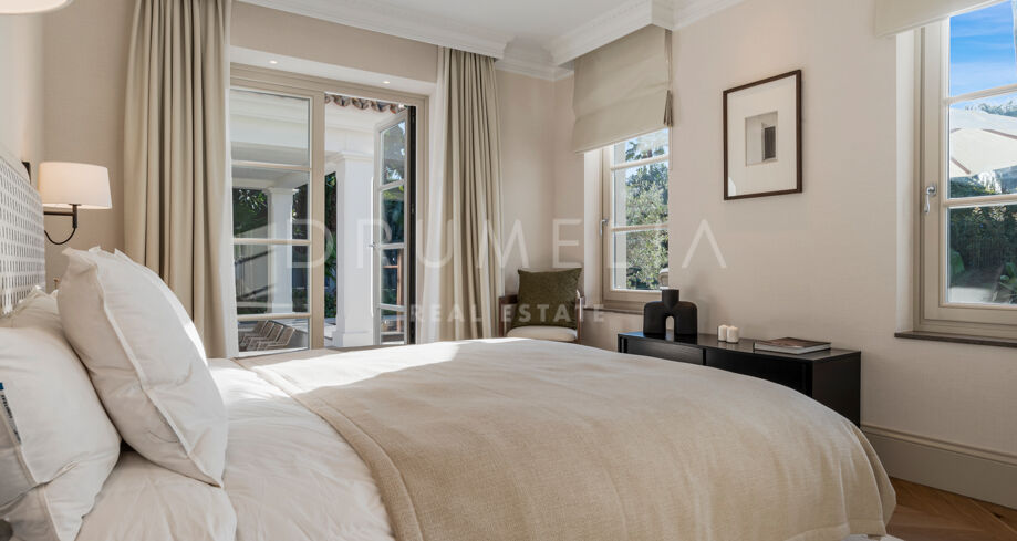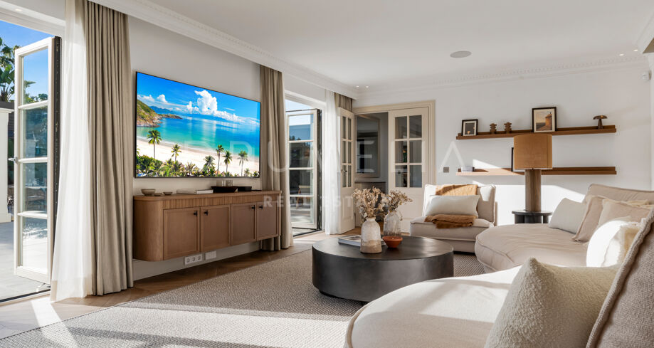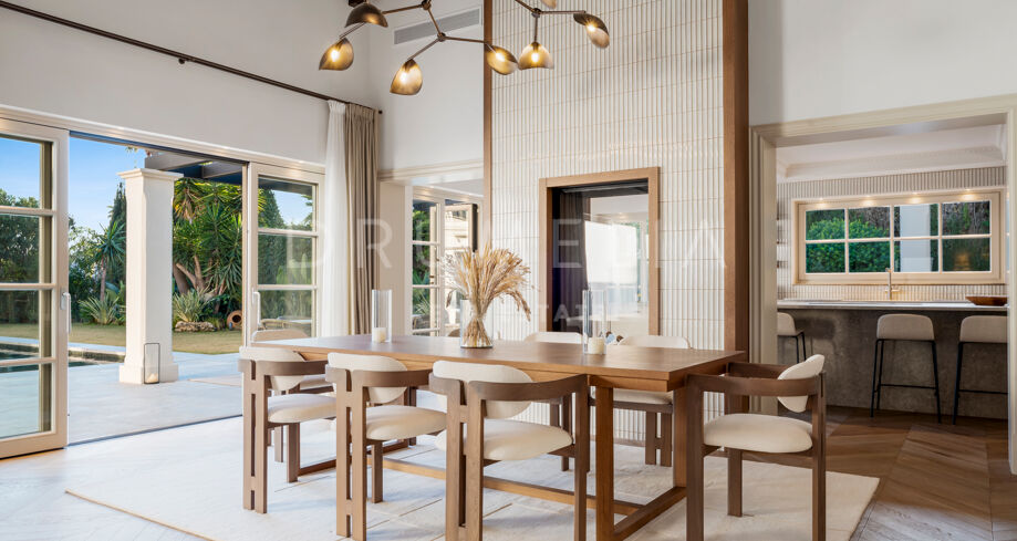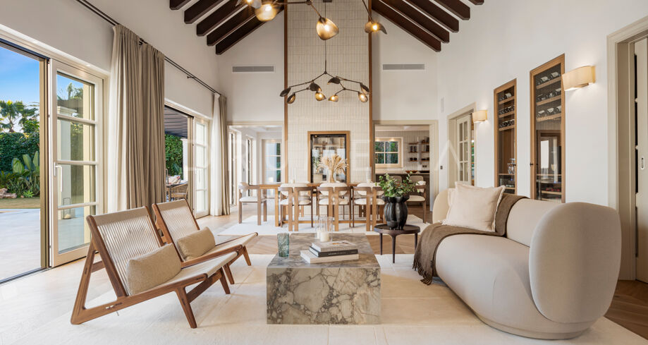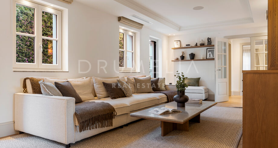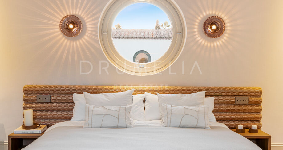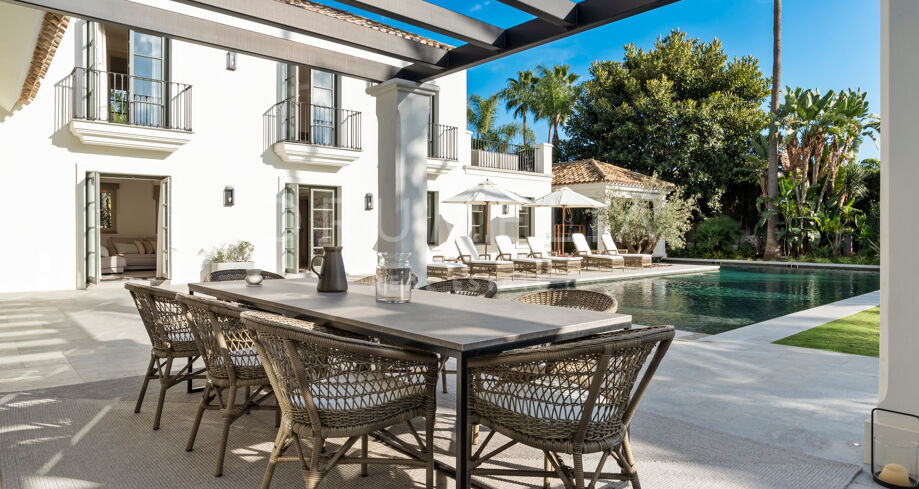 Ta wyrafinowana willa w Nueva Andalucía została w pełni odnowiona w wysokim standardzie, oferując doskonałe połączenie elegancji, funkcjonalności i prywatności. Zaprojektowana z myślą o rodzinach, nieruchomość wyróżnia się wieloma przestrzeniami do życia, dużą ilością miejsc na świeżym powietrzu oraz harmonijnym połączeniem wnętrz z przestrzenią zewnętrzną.