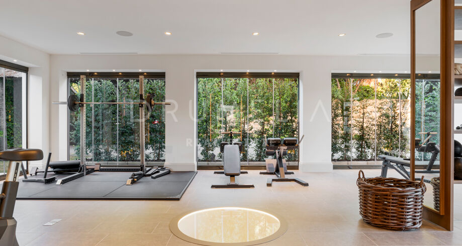 Dodatkowymi atutami są prywatna strefa spa, w pełni wyposażona siłownia, gabinet oraz obszerne miejsca parkingowe na kilka samochodów. Nieruchomość posiada również nowoczesne systemy klimatyzacji, ogrzewanie podłogowe oraz zaawansowaną automatykę domową.