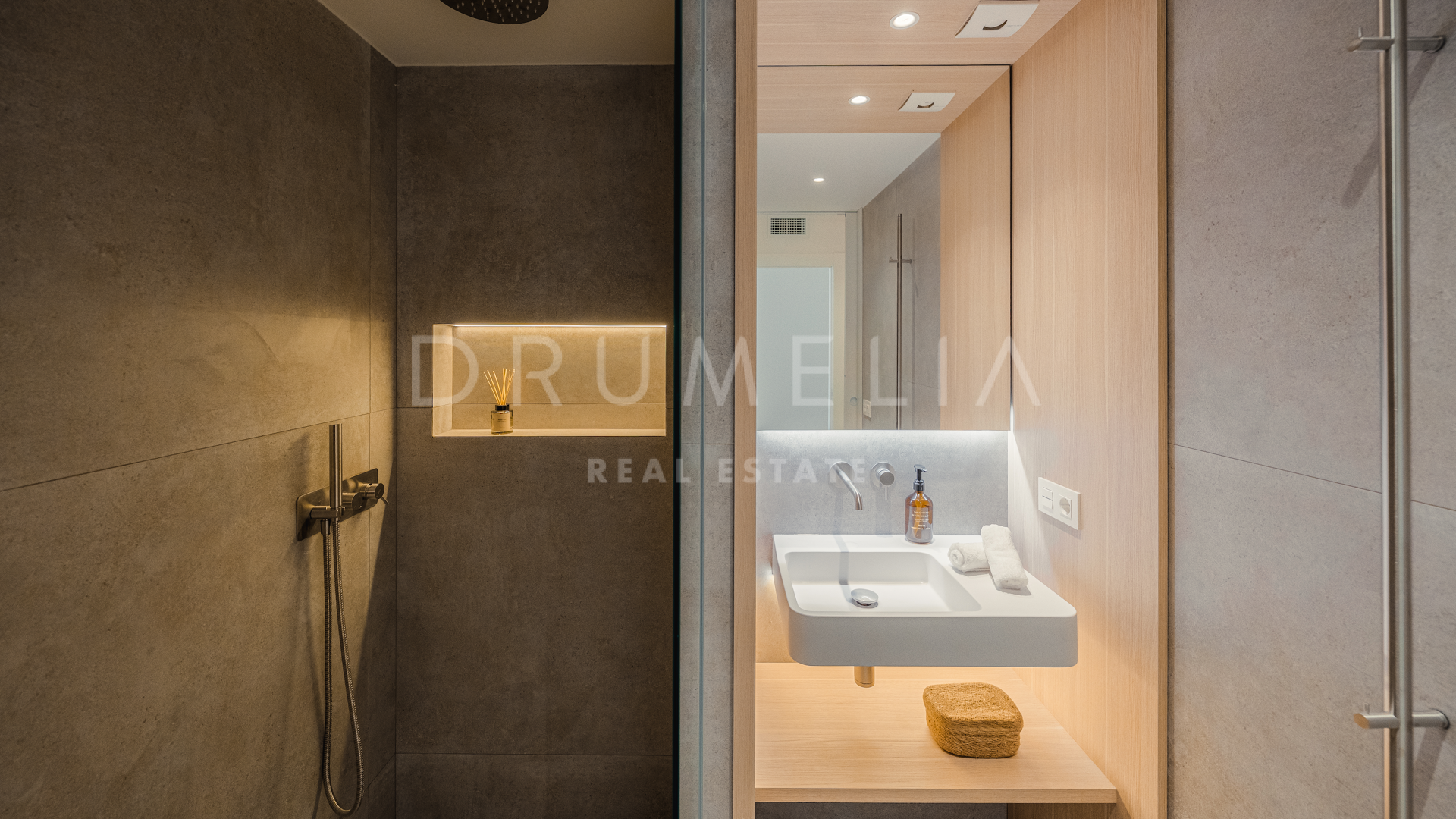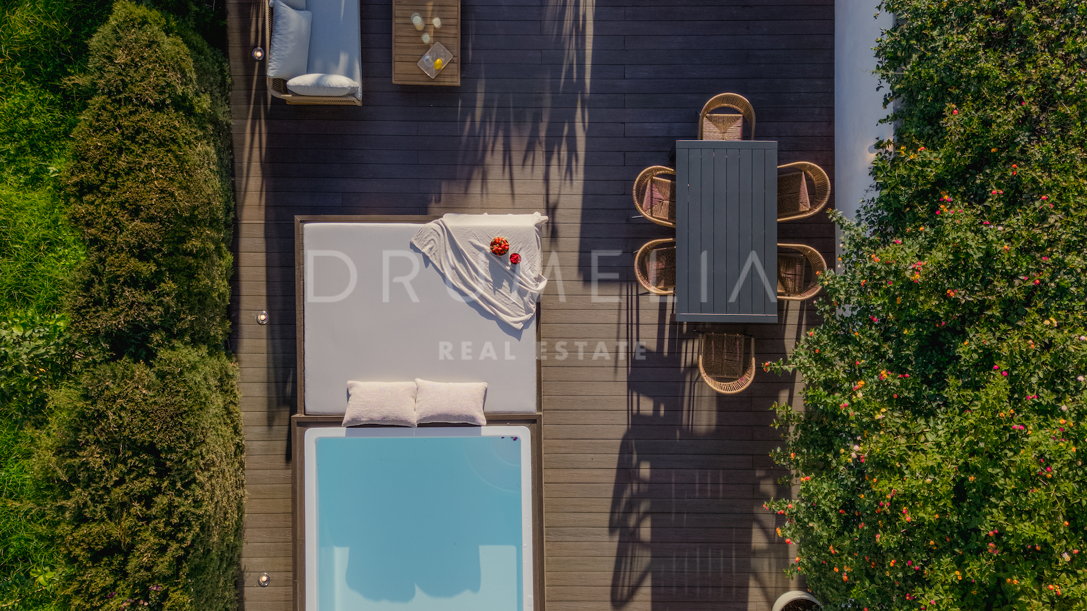 Nieruchomość oferuje 191 m² powierzchni użytkowej i przestronny taras o powierzchni 60 m². Trzy sypialnie i trzy łazienki tworzą funkcjonalną i prywatną przestrzeń idealną dla rodziny. Na tarasie znajduje się prywatny basen oraz widok na morze i góry – idealne miejsce na relaks.