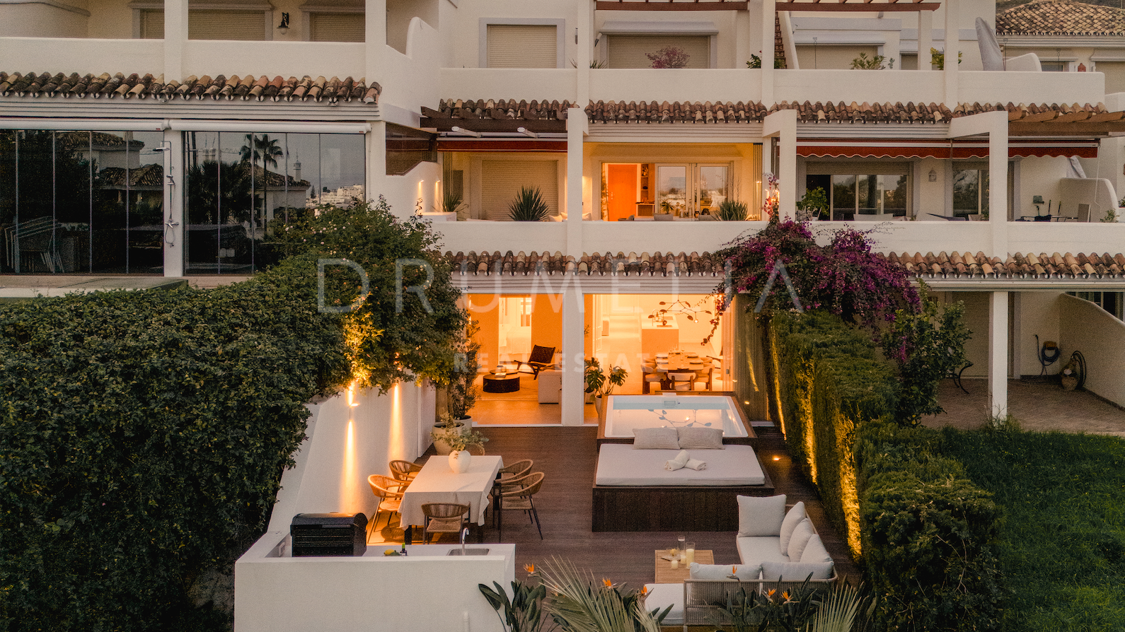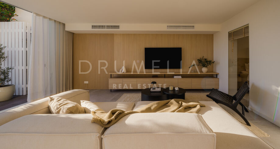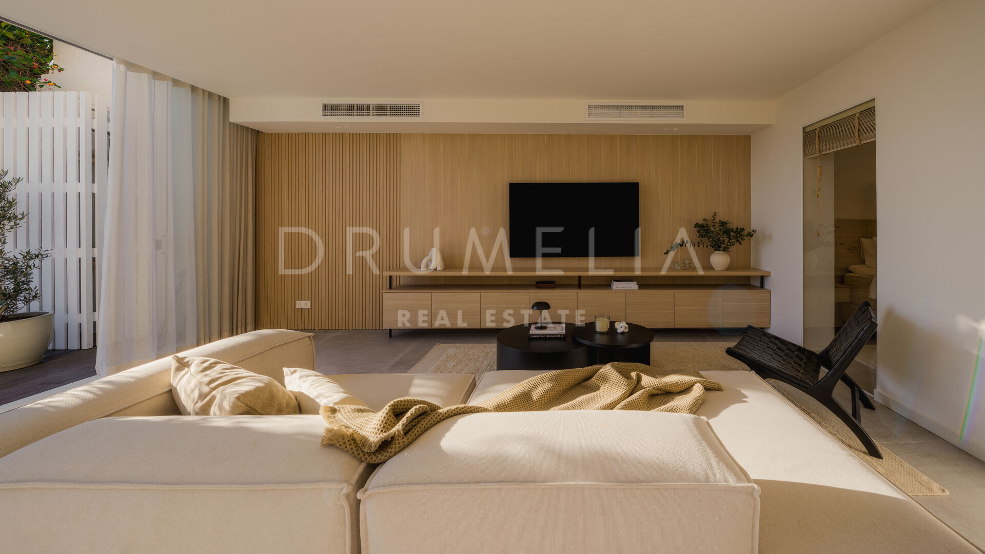 Położone w ekskluzywnej dzielnicy La Cerquilla, w sercu Nueva Andalucía, to przepiękne mieszkanie na parterze zostało całkowicie odnowione w eleganckim, skandynawskim stylu, łączącym wygodę i nowoczesny design.