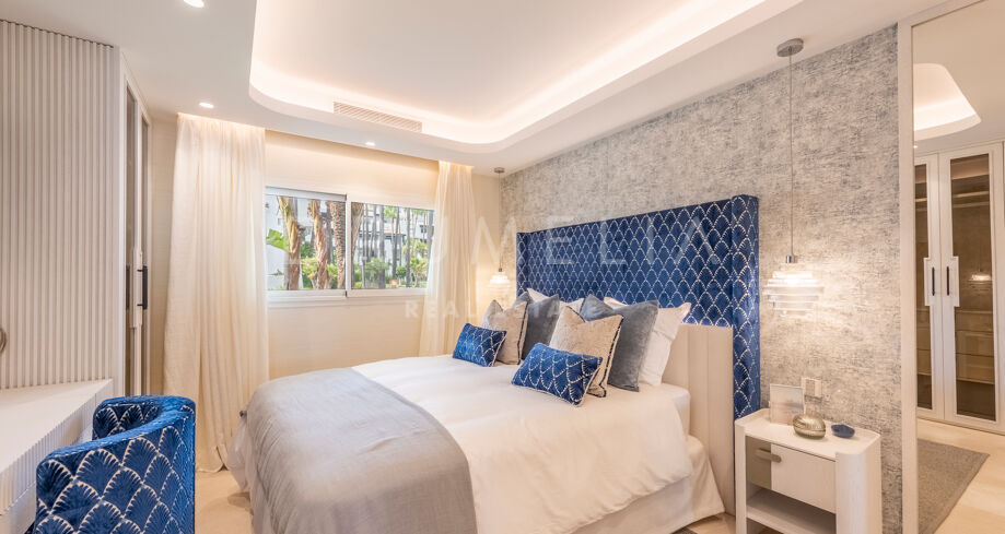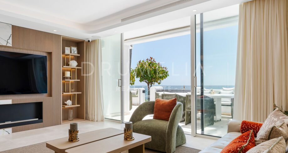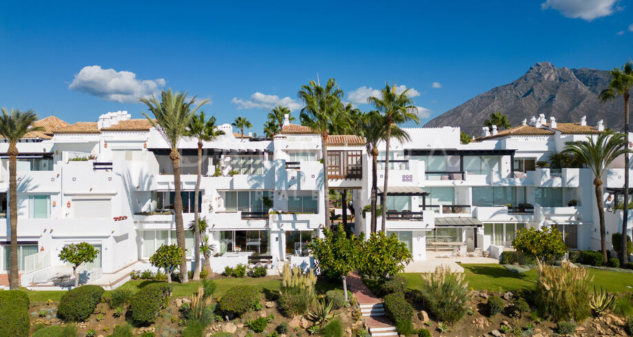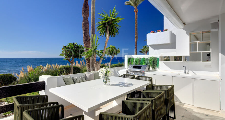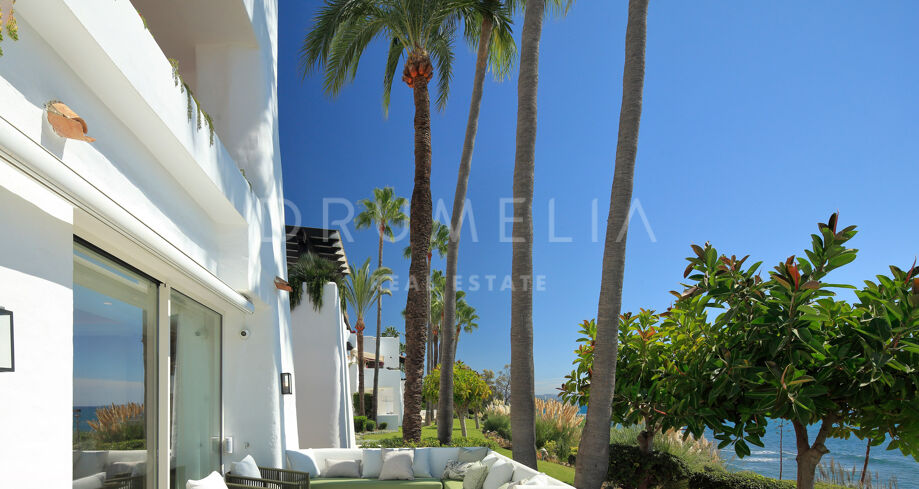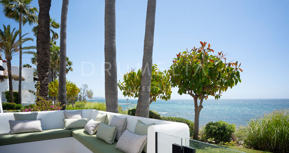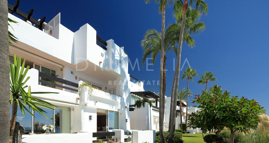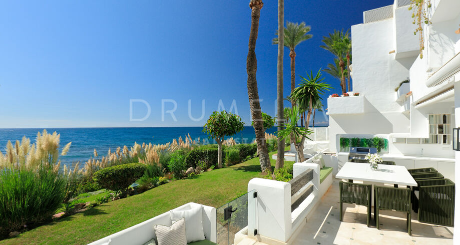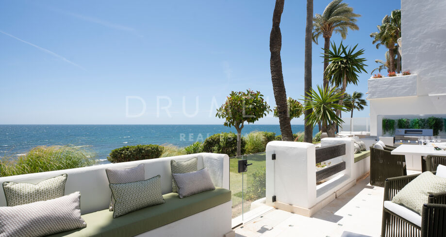 Apartament na parterze przy plaży z zapierającym dech w piersiach widokiem na morze w Marina Puente Romano.