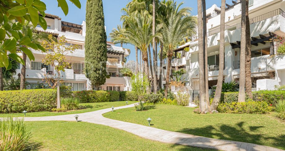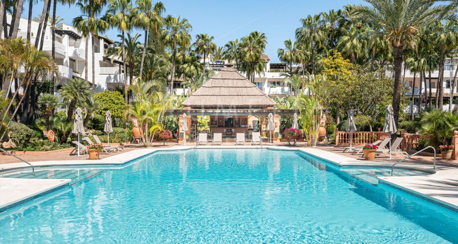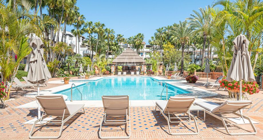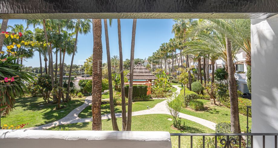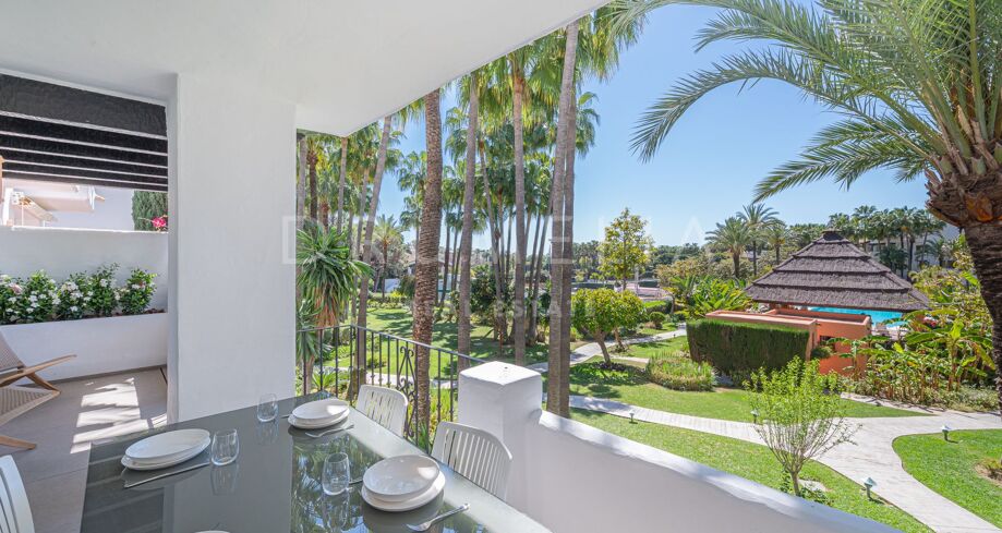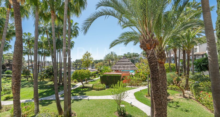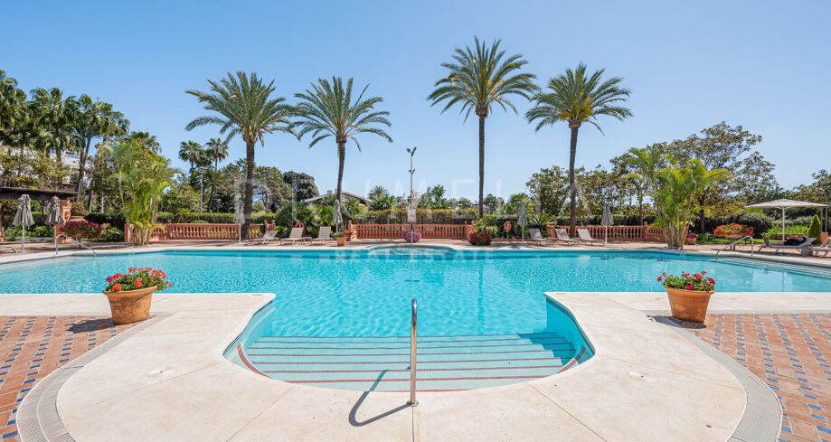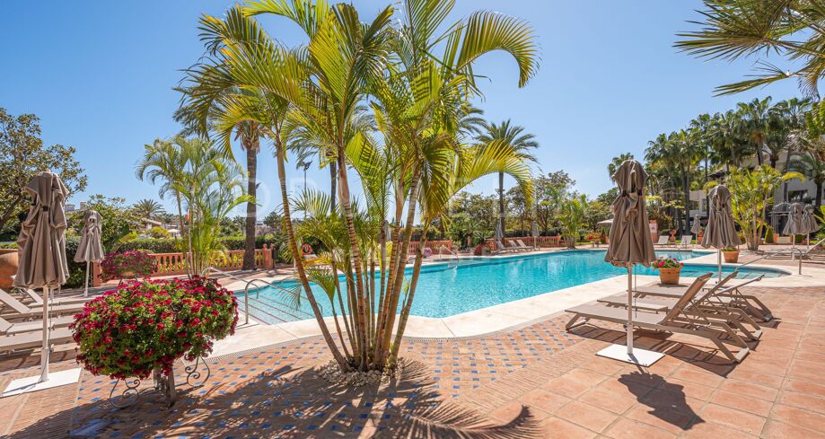 Apartament na sprzedaż w Puente Romano, Marbella Golden Mile z 3 sypialnie, 3 łazienki, 2 pokoje z łazienką, wbudowany 1992 i posiada basen (osiedlowy), garaż (wlasny) i ogród (osiedlowy). Wymiary: 117m² wybudowano i 18m² taras.
