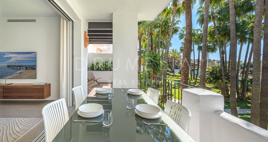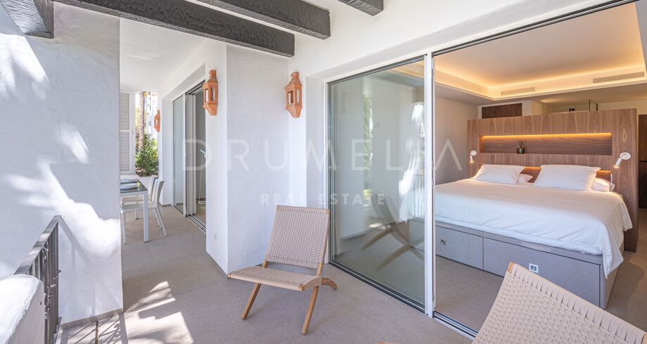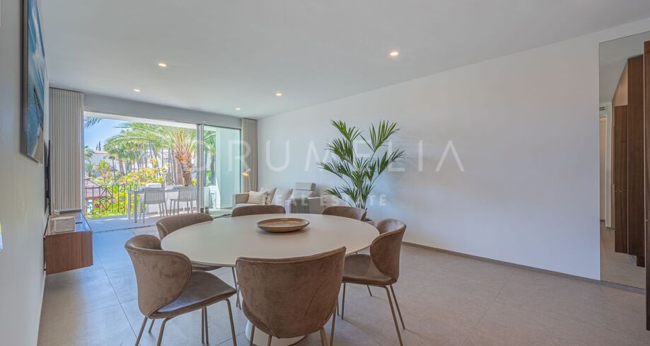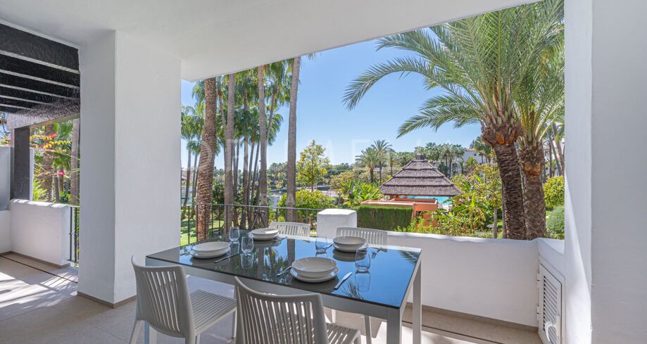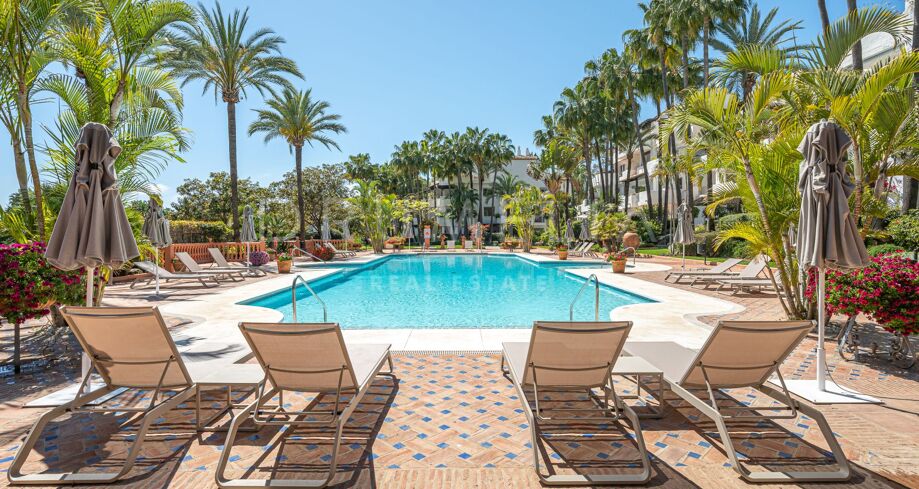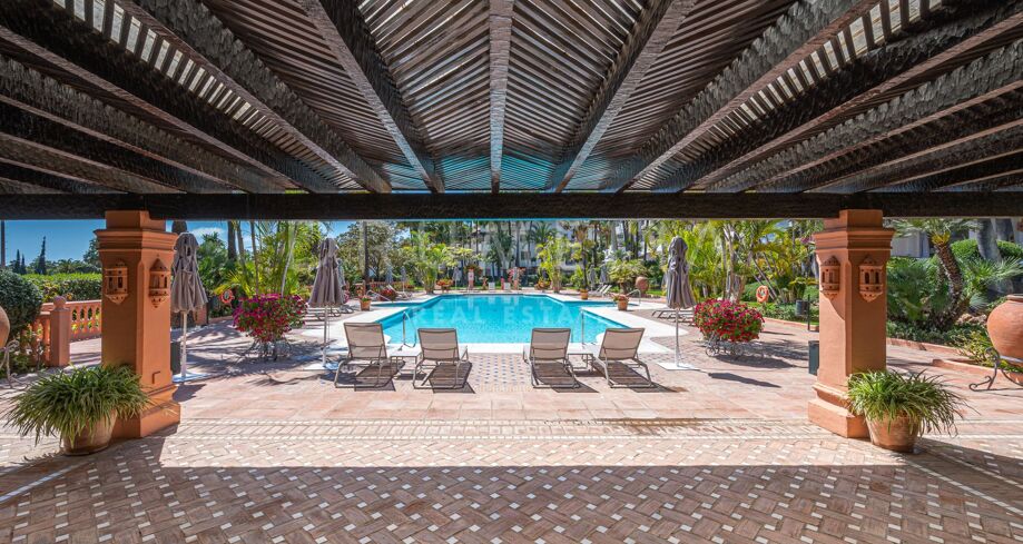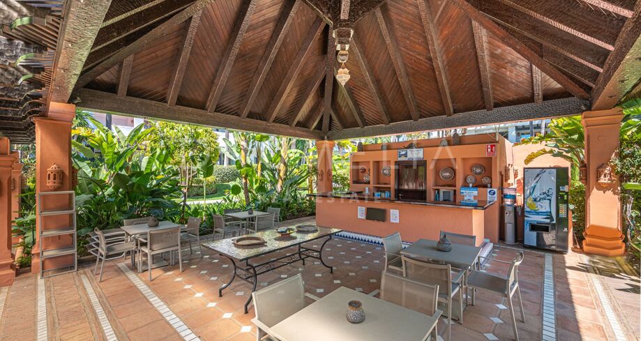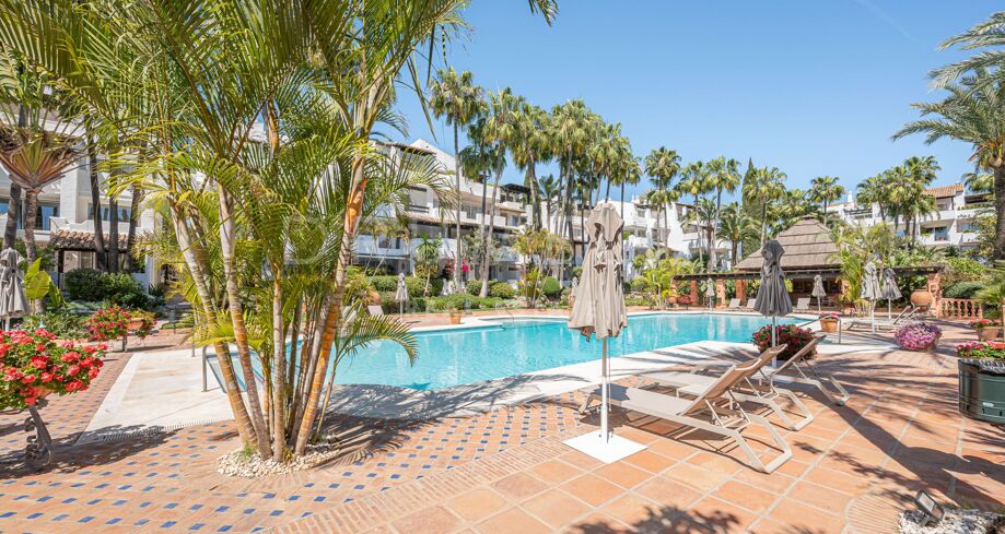 Apartament na sprzedaż w Puente Romano, Marbella Golden Mile z 3 sypialnie, 3 łazienki, 2 pokoje z łazienką, wbudowany 1992 i posiada basen (osiedlowy), garaż (wlasny) i ogród (osiedlowy). Wymiary: 117m² wybudowano i 18m² taras.