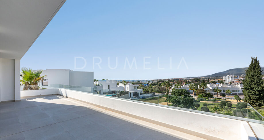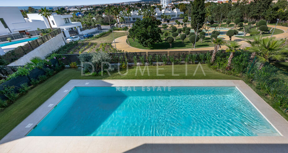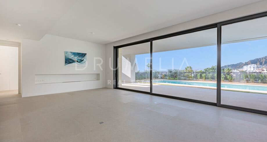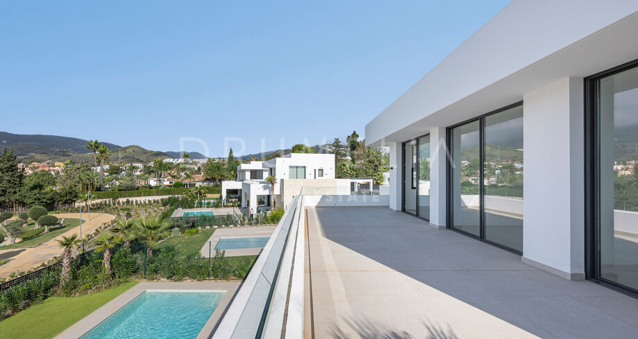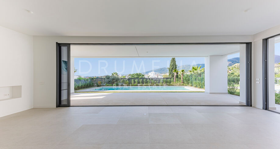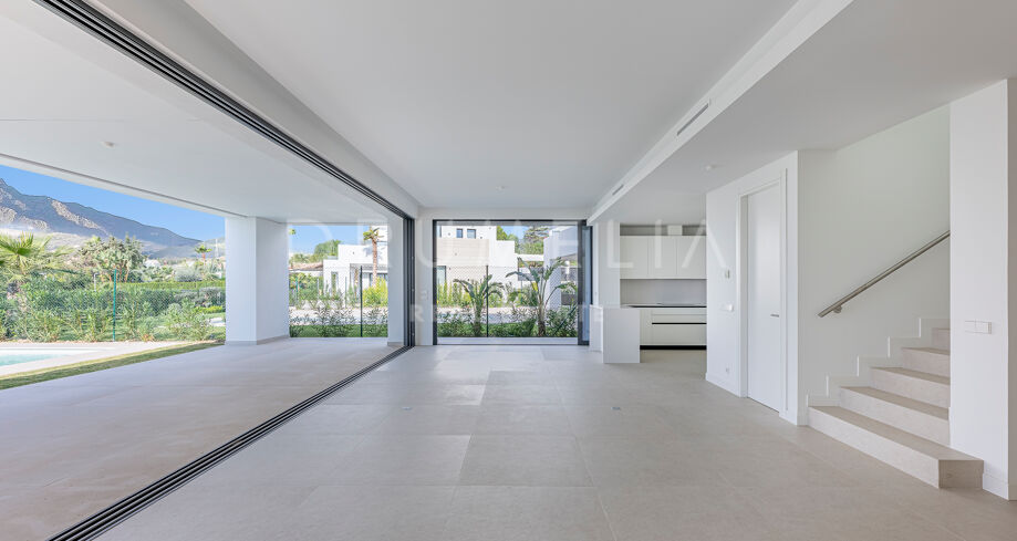 Willa wyróżnia się wyrafinowaną, współczesną architekturą, przestronnymi wnętrzami w układzie open-plan, oknami od podłogi do sufitu oraz eleganckimi, minimalistycznymi liniami, które maksymalizują naturalne światło. Wykonana z materiałów najwyższej jakości i wykończona w luksusowy sposób, zapewnia eleganckie i komfortowe warunki do życia. Projekt gwarantuje płynne połączenie przestrzeni wewnętrznych i zewnętrznych, uzupełnione o prywatny ogród i basen, idealne do całorocznego korzystania z wyjątkowego klimatu Marbelli.