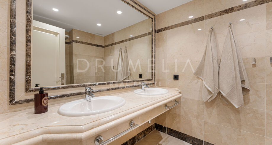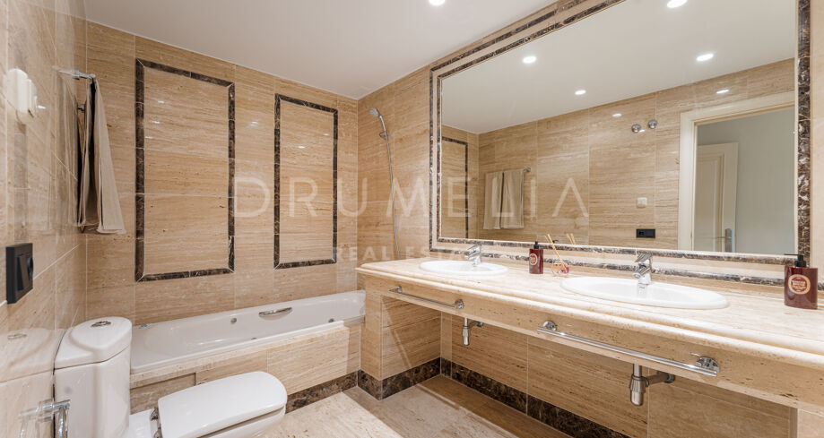 Ten elegancki apartament na podwyższonym parterze położony jest w prestiżowej dzielnicy Sierra Blanca przy słynnej Golden Mile w Marbelli i oferuje wyjątkowe połączenie komfortu, prywatności oraz wyrafinowanego stylu życia. Nieruchomość o powierzchni 173 m² oraz tarasie 28 m² posiada harmonijny układ, idealny zarówno do codziennego życia, jak i wypoczynku, w bezpiecznym i ugruntowanym środowisku mieszkalnym.