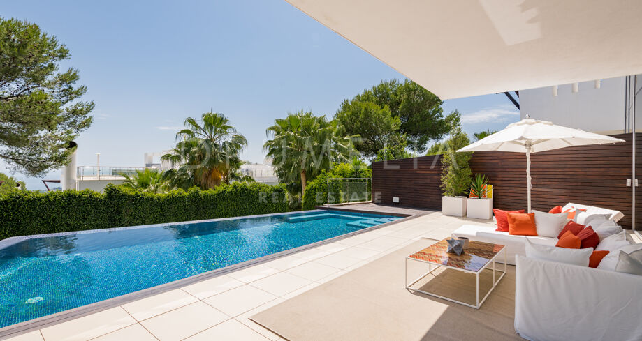 Blizniaki na sprzedaż w Sierra Blanca, Marbella Golden Mile z 3 sypialnie, 3 łazienki, wbudowany 2012 i posiada basen (wlasny), garaż (wlasny) i ogród (wlasny). Wymiary: 767m² wybudowano i 159m² taras.