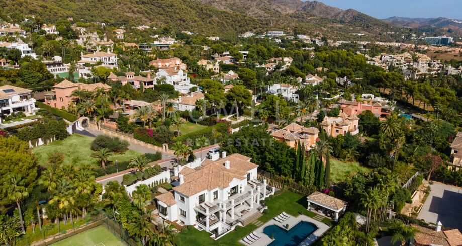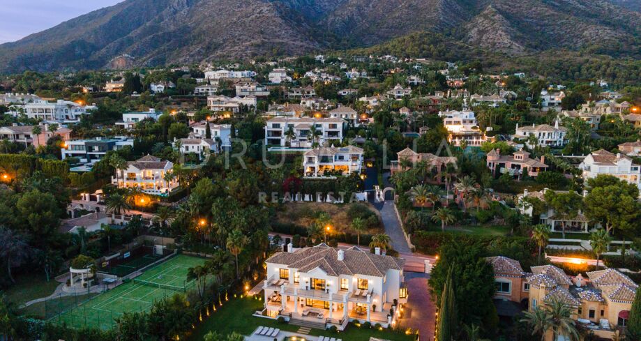 Willa na sprzedaż w Sierra Blanca, Marbella Golden Mile z 6 sypialnie, 7 łazienki, 1 toaleta, wbudowany 1999 i posiada basen (wlasny), garaż (wlasny) i ogród (wlasny). Wymiary: 928m² wybudowano, 2084m² działka i 206m² taras.