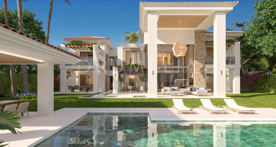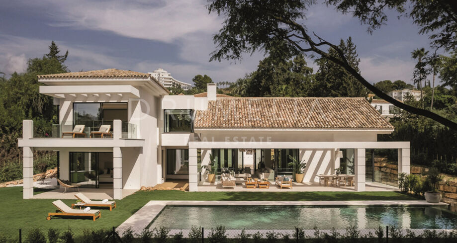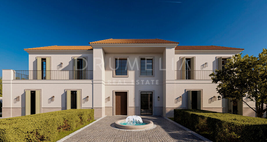 • Mediterraan geïnspireerde villa met patio’s, overdekte terrassen en een moderne interpretatie van klassieke architectuur.