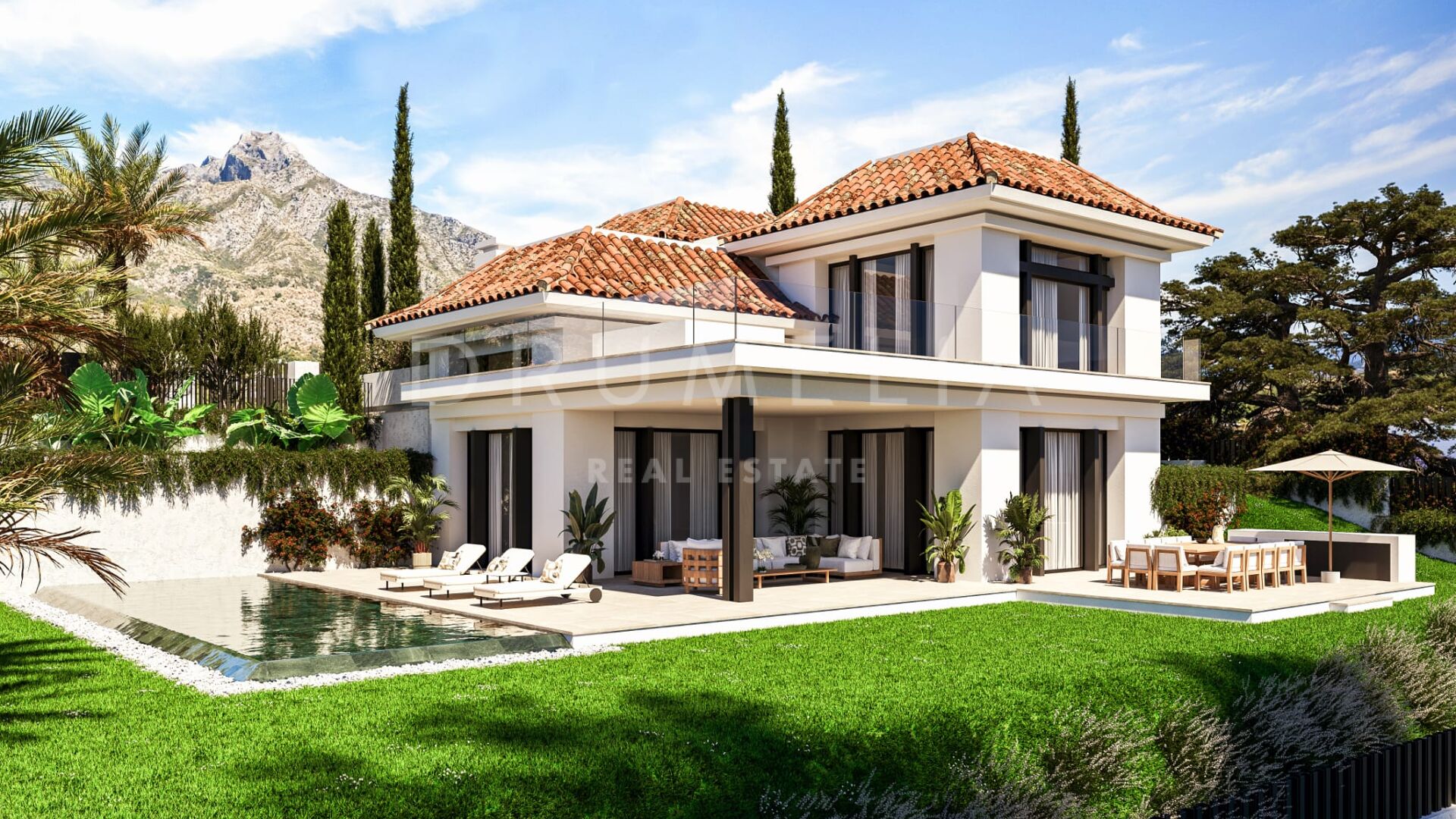Dit nieuwe wooncomplex bestaat uit vier vrijstaande villa’s, elk met een eigen zwembad en tuin, en combineert eigentijds design met mediterrane elegantie. Perfect gelegen aan de Golden Mile met directe toegang tot de ringweg van Marbella, op slechts 900 meter van het strand en dicht bij alle voorzieningen. Volledig gemeubileerd met designmeubilair en afgewerkt met uitzonderlijke kwaliteit, vormt elke woning een ideale moderne oase.