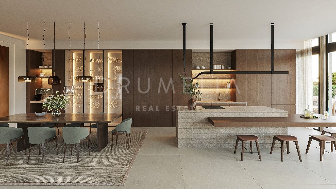 De villa’s zijn verdeeld over drie verdiepingen op percelen van circa 1.100 m² en beschikken over ruime, lichte leefruimtes met open indeling, een volledig uitgeruste keuken in Gaggenau-stijl en directe toegang tot de aangelegde tuin, het zwembad en de barbecuezone. De bovenverdieping biedt een mastersuite met eigen badkamer, royale inloopkast en groot terras met panoramisch uitzicht. De benedenverdieping omvat extra slaapkamers, een gastensuite en een veelzijdige kelder met tv-kamer, wasruimte, speelruimte en voorbereidende installatie voor sauna en fitnessruimte.