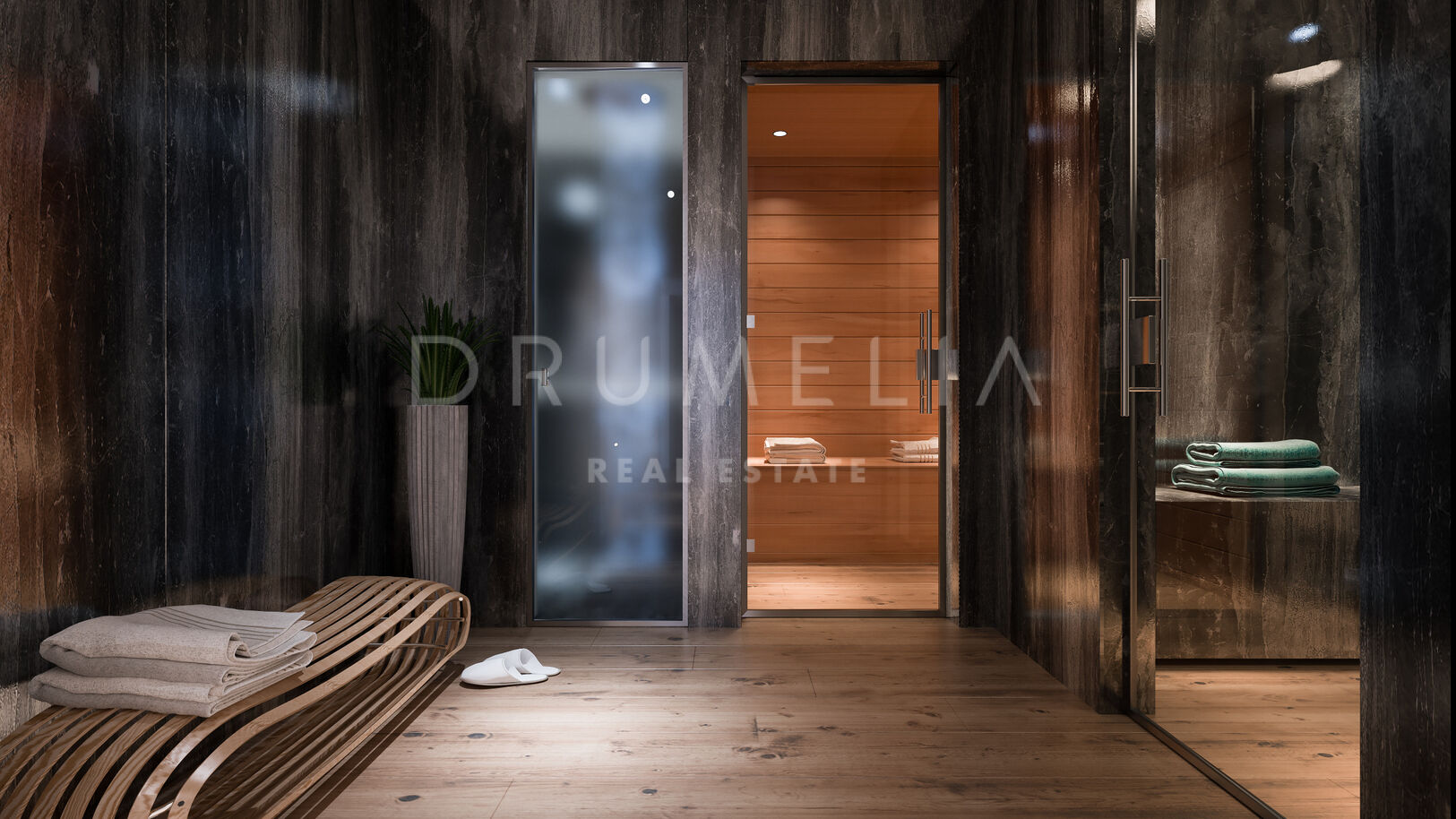 Le dernier appartement disponible dispose d’une cuisine entièrement équipée avec des appareils Miele ou Gaggenau, d’un système domotique et d’une connexion Wi-Fi haut débit. Les résidents bénéficient d’installations exceptionnelles comprenant un luxueux spa, une salle de sport entièrement équipée, un sauna et un hammam, créant un cadre idéal pour le bien-être et la détente. La propriété comprend également deux places de parking privées, un débarras et une voiturette électrique enregistrée avec son propre emplacement.