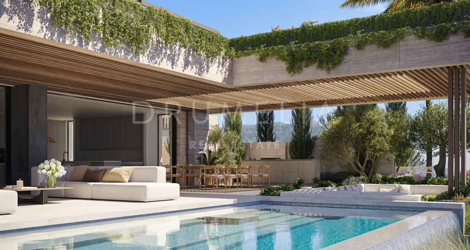 На главном этаже располагается открытая гостиная зона, плавно переходящая на просторные террасы и к изысканному бассейну, позволяя жителям наслаждаться жизнью на свежем воздухе, которой славится Марбелья. Верхний этаж посвящён роскошному мастер-сьюту и элегантным семейным помещениям. Нижний уровень предлагает разнообразные эксклюзивные удобства, сочетая элегантный дизайн с повседневной практичностью и создавая по-настоящему уникальное жилое пространство.