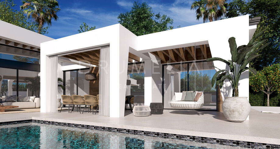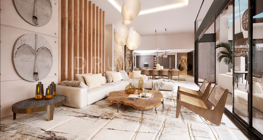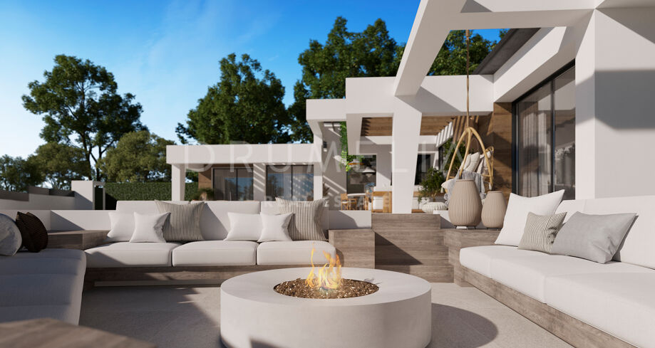 Ta wyjątkowa nowoczesna willa w Nueva Andalucía to rzadka okazja, aby nabyć nowy dom, który łączy współczesną architekturę z śródziemnomorskim urokiem. Zaprojektowana dla osób ceniących jakość i komfort, budowana jest zgodnie z najwyższymi standardami, z użyciem materiałów i marek premium, takich jak Technal, Neff i Villeroy & Boch. Projekt podkreśla światło i przestrzeń, wykorzystując naturalne barwy, drewno i kamień oraz płynne połączenie wnętrza z ogrodem.