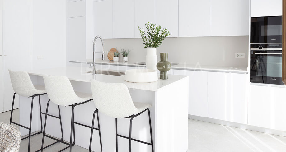 Cada vivienda ha sido diseñada con atención al detalle para integrar el entorno natural en el interior, con espacios de concepto abierto que se funden armoniosamente con el paisaje. Acabados de alta calidad como suelos porcelánicos de gran formato, amplios ventanales y cocinas integradas crean una atmósfera luminosa y acogedora. Las amplias terrazas invitan a disfrutar de comidas y momentos al aire libre, mientras que los materiales y elementos de diseño de primera —como encimeras de cuarzo e iluminación LED— reflejan un firme compromiso con la calidad. Situadas en un complejo cerrado en primera línea de golf, las 104 viviendas de tres y cuatro dormitorios cuentan con jardines exuberantes y dos grandes piscinas con solárium, ofreciendo un refugio privado y relajado bajo el sol del Mediterráneo.