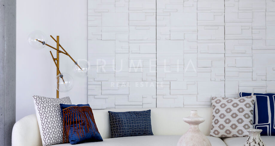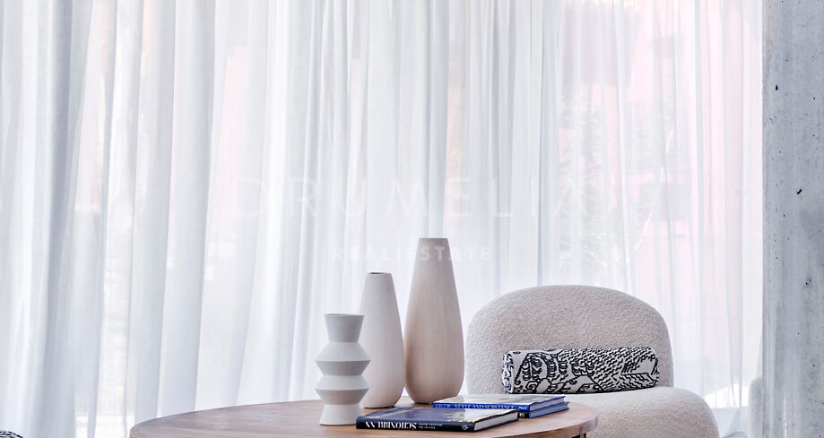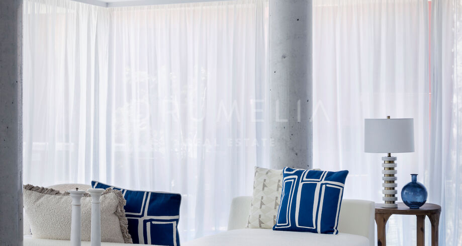 Interiören i dessa bostäder återspeglar ett engagemang för ett raffinerat boende, kurerat av den berömda Raúl Martins Studio. Med ett skarpt öga för design är utrymmena omsorgsfullt arrangerade för att maximera komfort och stil, med en lugnande neutral palett accentuerad med djupblå toner som påminner om havet. Öppna planlösningar, moderna möbler och elegant belysning skapar en atmosfär av diskret lyx. Det här är mer än bara ett hem – det är ett landmärke på en av de mest eftertraktade kustplatserna, där design, natur och livsstil möts utan ansträngning.