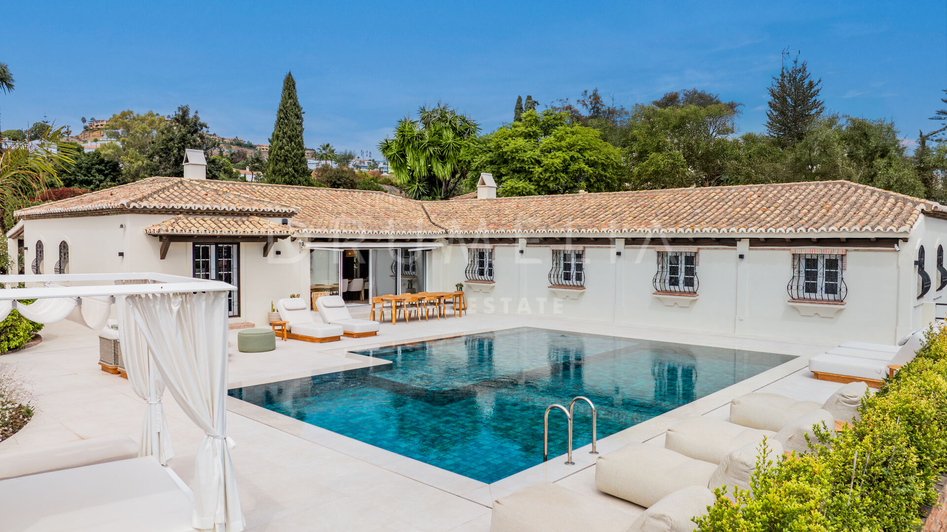 In the prestigious residential area of Altos del Paraíso, Benahavís, this renovated villa blends Andalusian architecture with a fresh, contemporary interior design. Positioned on a 1,307 m² plot, the property offers 391 m² of refined living space, combining elegance, comfort, and functionality.