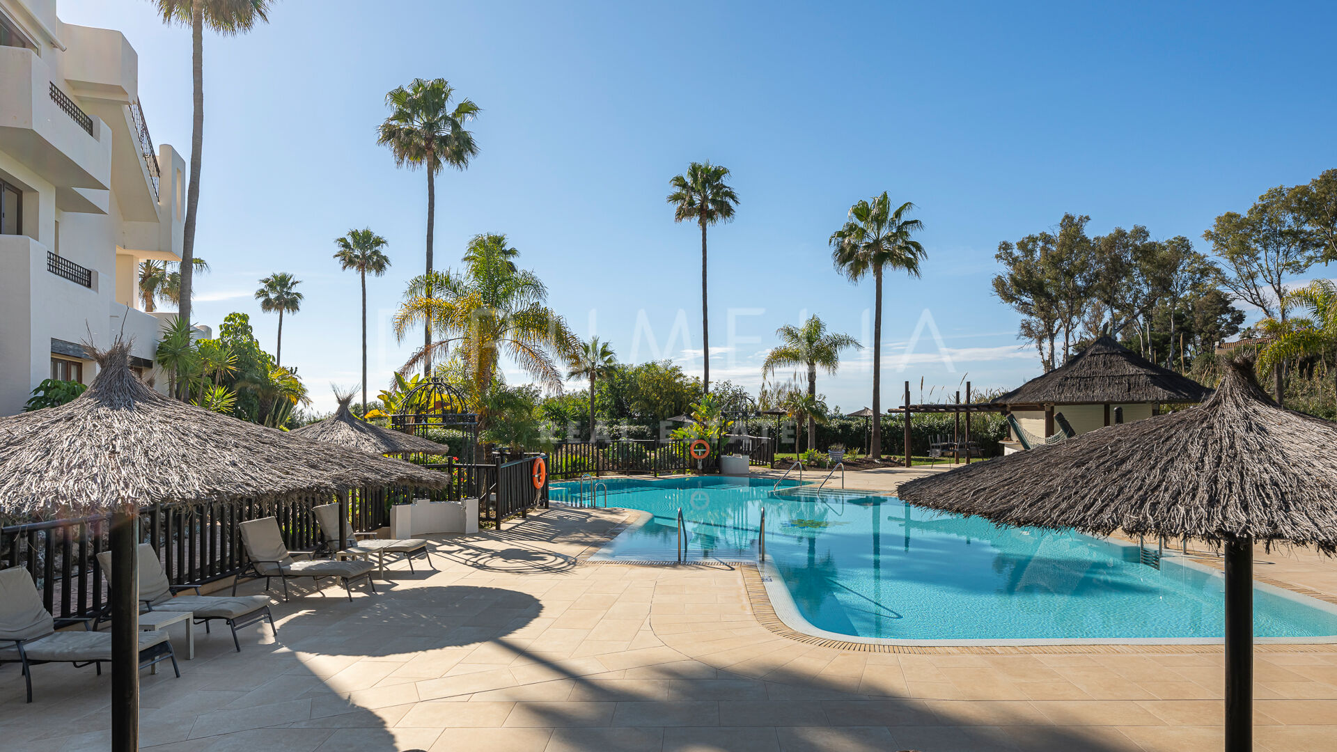 Situated within the exclusive beachfront enclave of Bahía del Velerín, between Marbella and Estepona, this stylishly renovated apartment offers the perfect blend of coastal elegance and modern comfort. The gated community features 24/7 security, lush tropical gardens, a serene lagoon-style pool with a private snack bar, and direct access to one of the area’s most beautiful beaches.