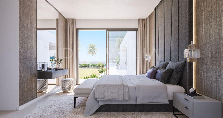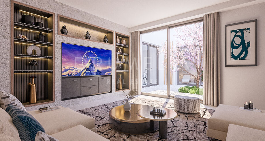 This high-end property on the New Golden Mile comes for sale in excellent condition, rewarding the owners with comfort, beauty and elegance. It has many tailor-made details and benefits from modern technology, air conditioning, underfloor heating, energy-efficient LED lights, a luxury freestanding bath, fitted wardrobes, glass doors, fireplace, marble floors, alarm, double-glazing, 2 parking spaces, etc.
