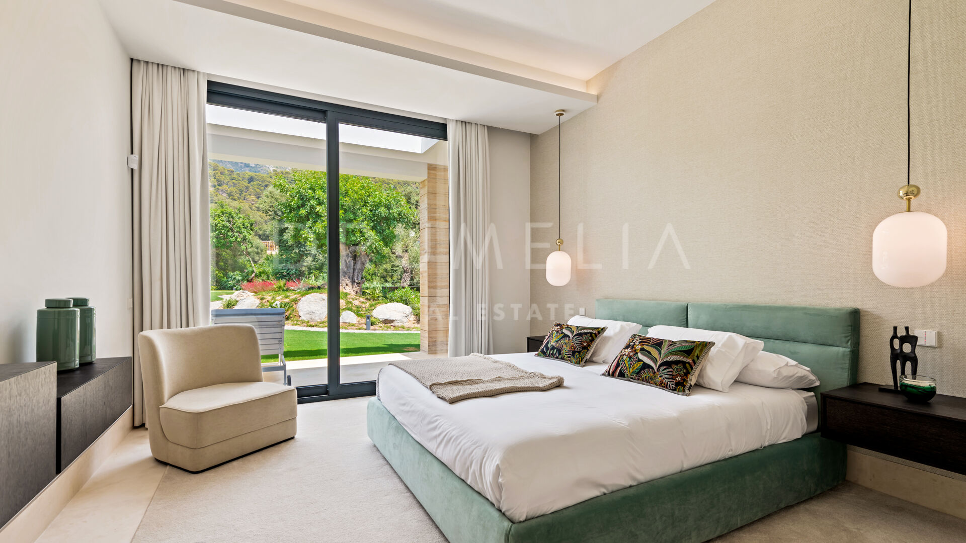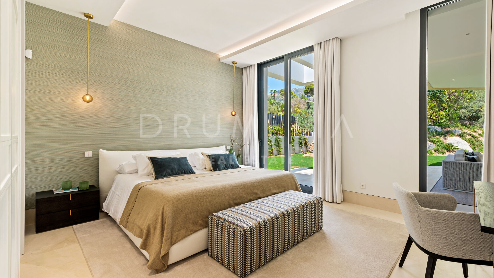This extraordinary modern 9-bedroom house for sale is nestled in Cascada de Camojan, the picturesque high-end urbanization located close to all amenities in the heart of the exclusive Sierra Blanca area, Marbella, Costa del Sol.