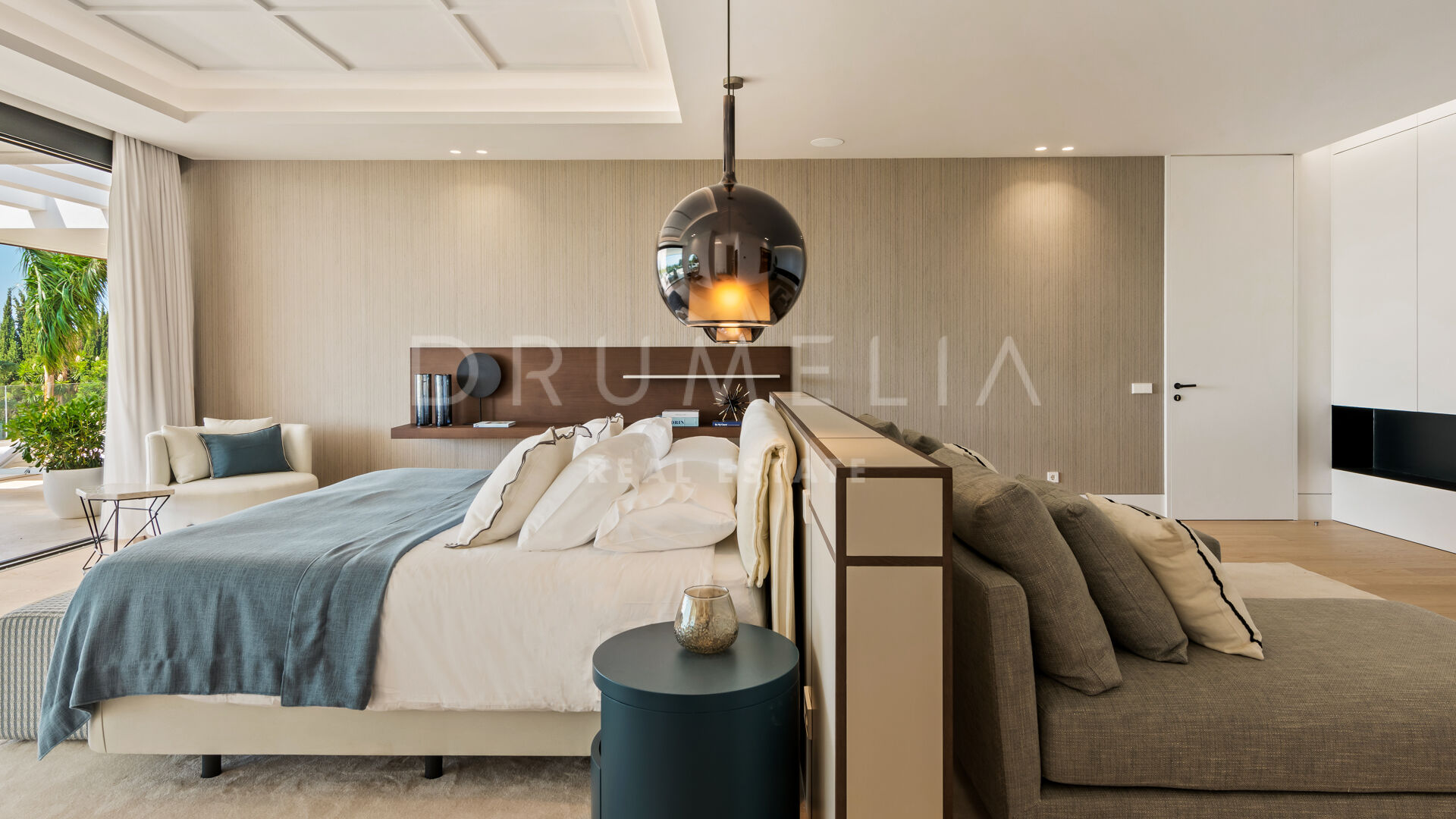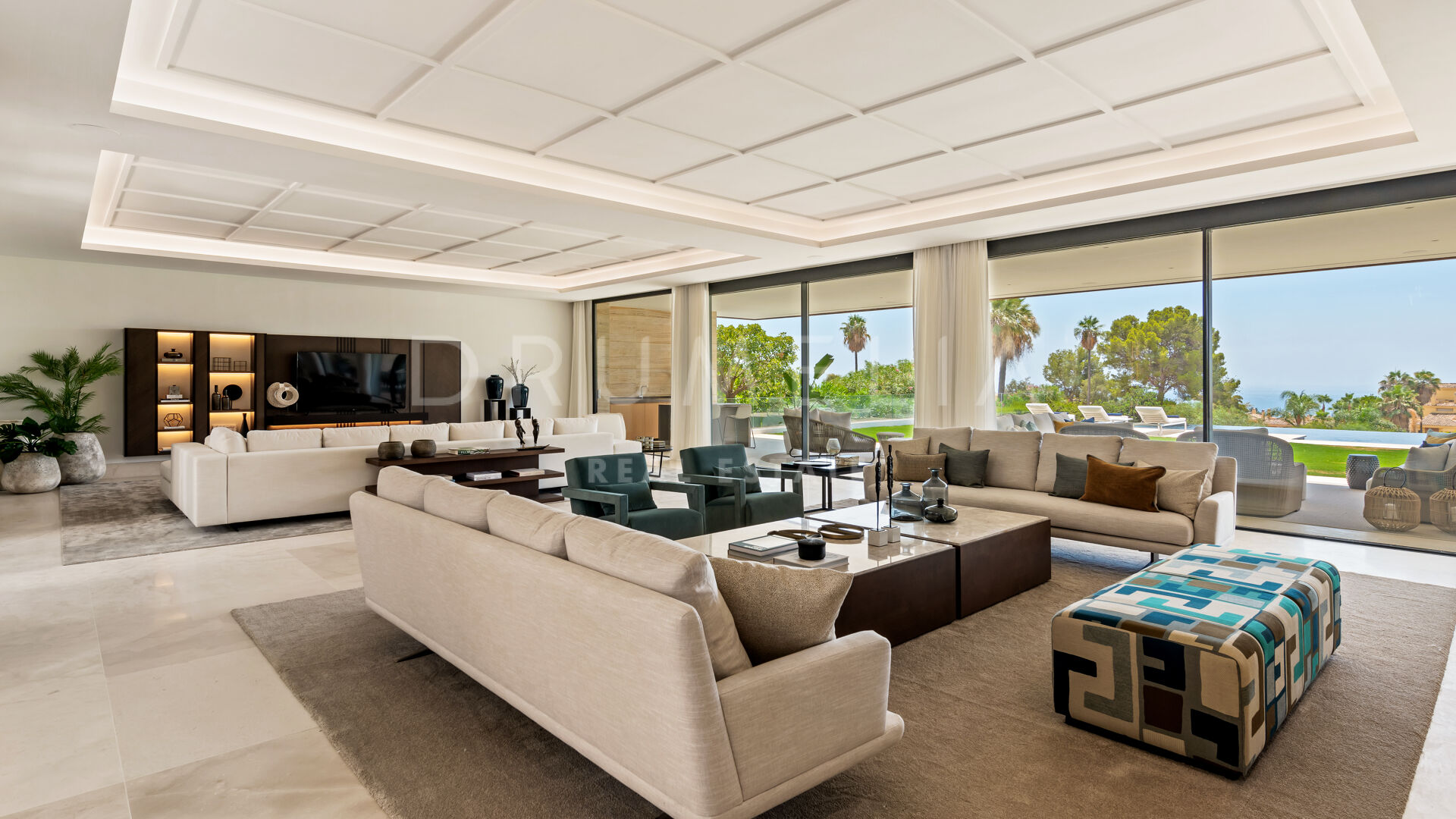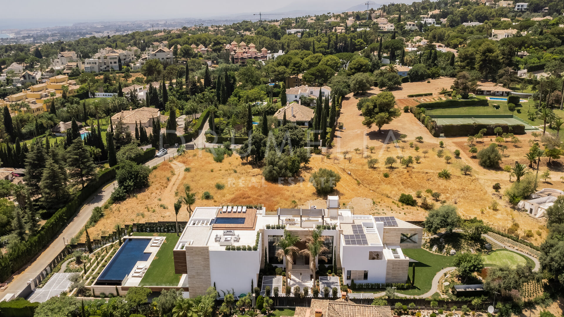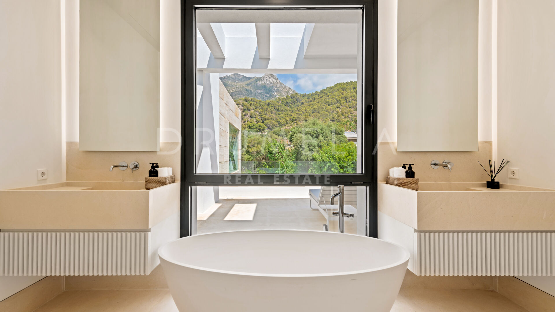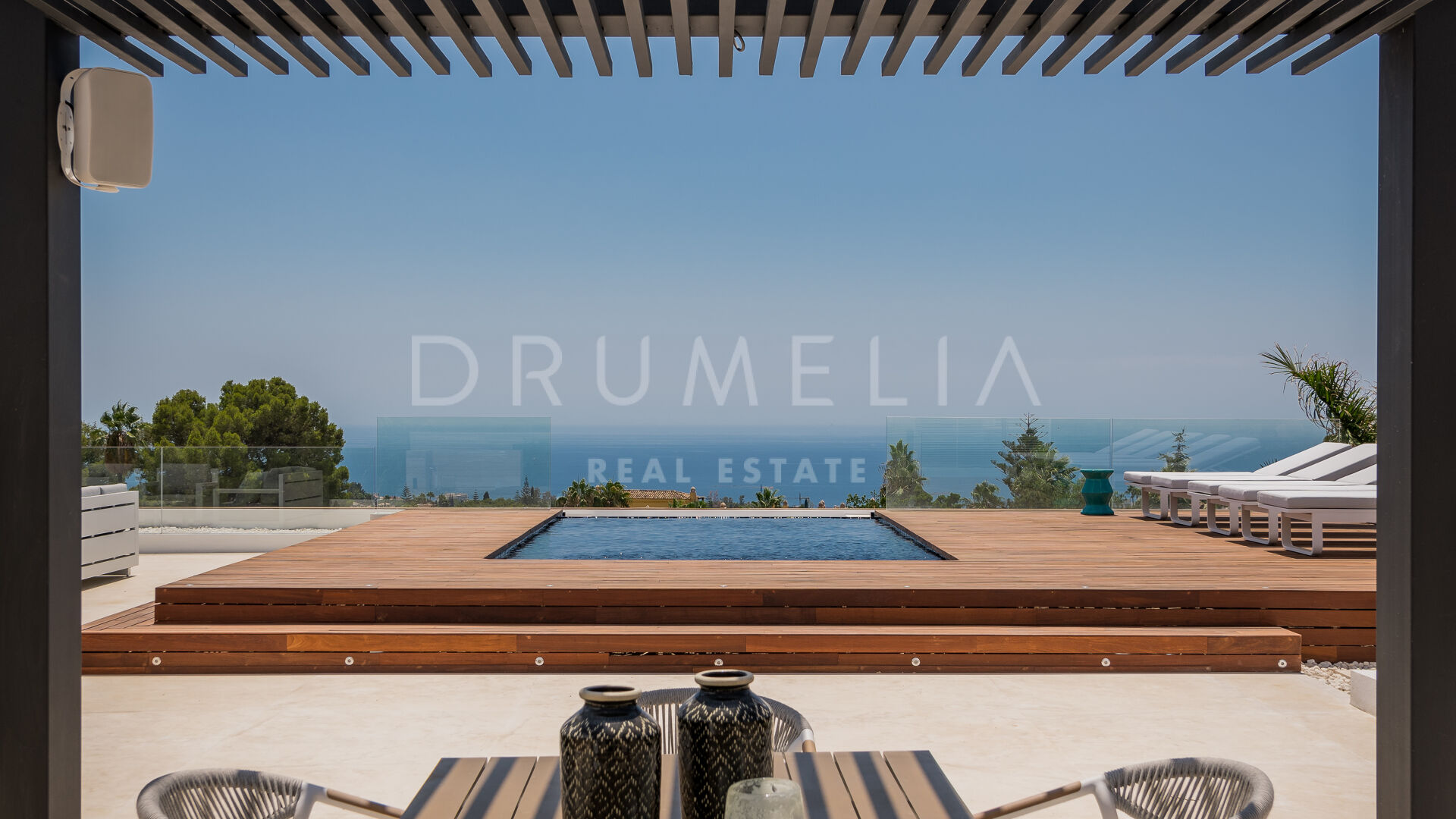 Spectacular panoramic sea and mountain views can be enjoyed from every point of the large 3.000-m2 plot with 2 private gardens, one facing the astonishing La Concha Mountain, and another with an infinity swimming pool and integrated Jacuzzi overlooking the Mediterranean Sea.