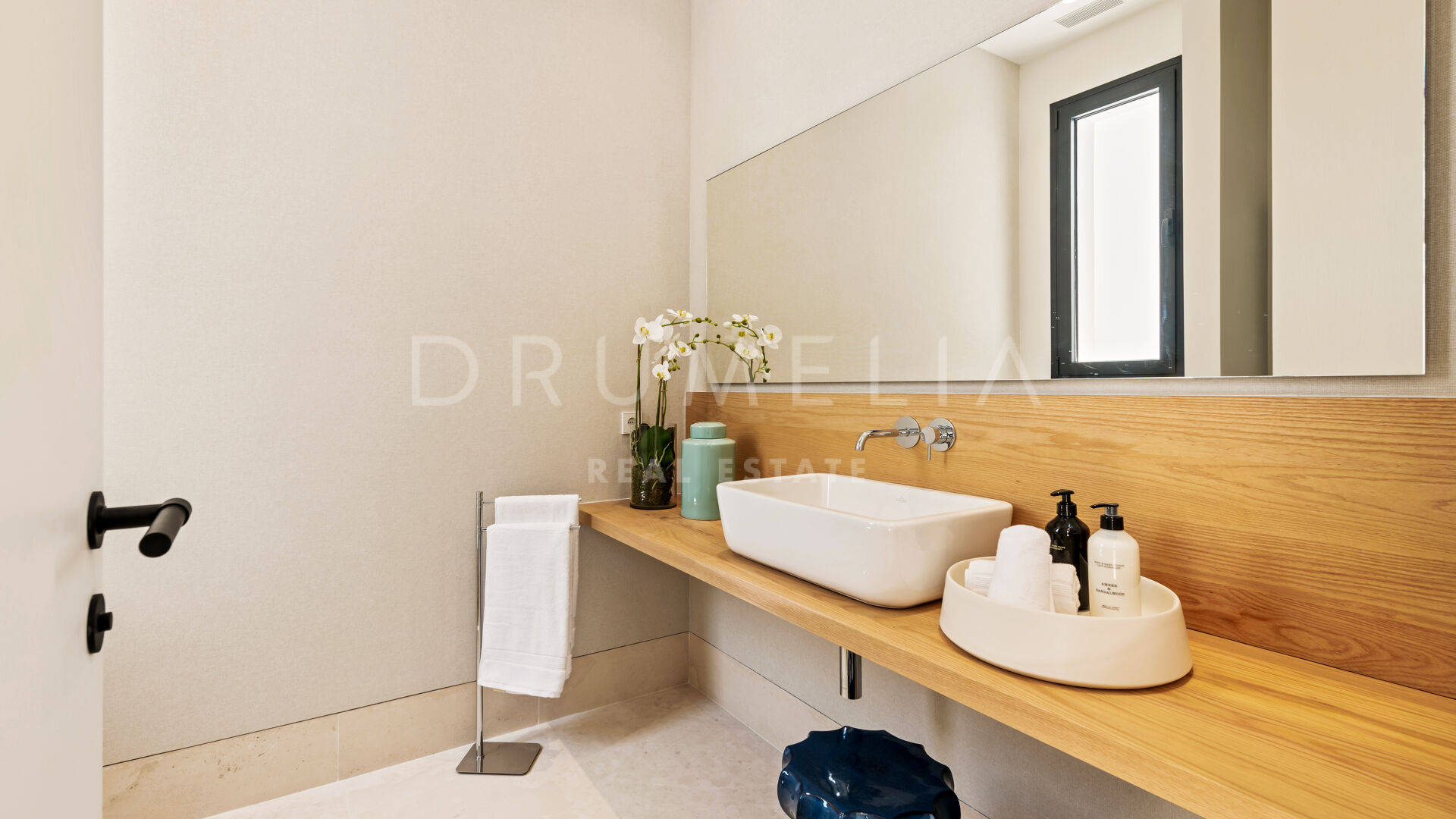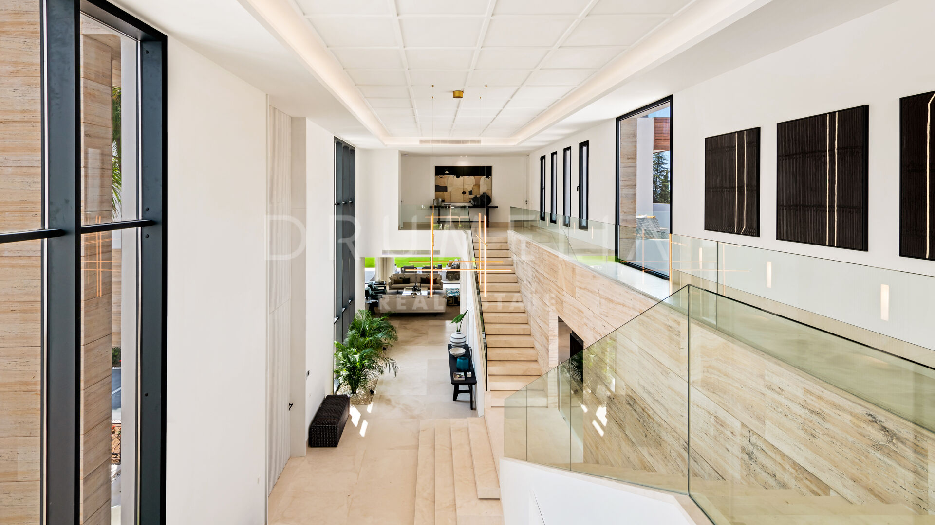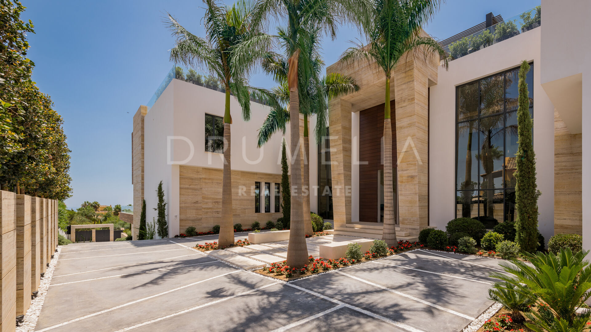 The developers have spared no expense with this magnificent masterpiece Clean volumes enhanced by the use of different materials create a game of shadows that inflict life to the modern house. Distinctive facades made of precious materials such as Travertine marble and Iroko wood. Oriented to the south, an extraordinary architecture that encloses 1.598 m2 is surrounded by majestic landscape gardens, lush greenery of the urbanisation and the high-end properties of the Sierra Blanca area.