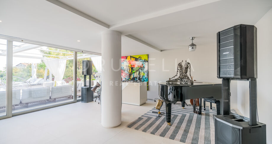 Set on a generous plot of over 5.000 m², truly outstanding residence is situated in one of most exclusive, discreet and beautiful communities of the southern coast that nestles in the foothills of La Concha. Named Cascada de Camojan for its famous waterfalls, it offers a life of exceptional style and comfort, a high level of privacy (with roads that only serve local residents), security (gated, 24-hour security) and nothing but the finest in high-end properties tremendously requested by a prosperous international clientele. Placed in the heart of the prestigious Marbella’s Golden Mile, it is conveniently close to glorious beaches, excellent golf courses, international schools and all cosmopolitan and glamorous attractions and amenities of both Marbella and Puerto Banús. No wonder that the demand for properties here has always been higher than the supply.