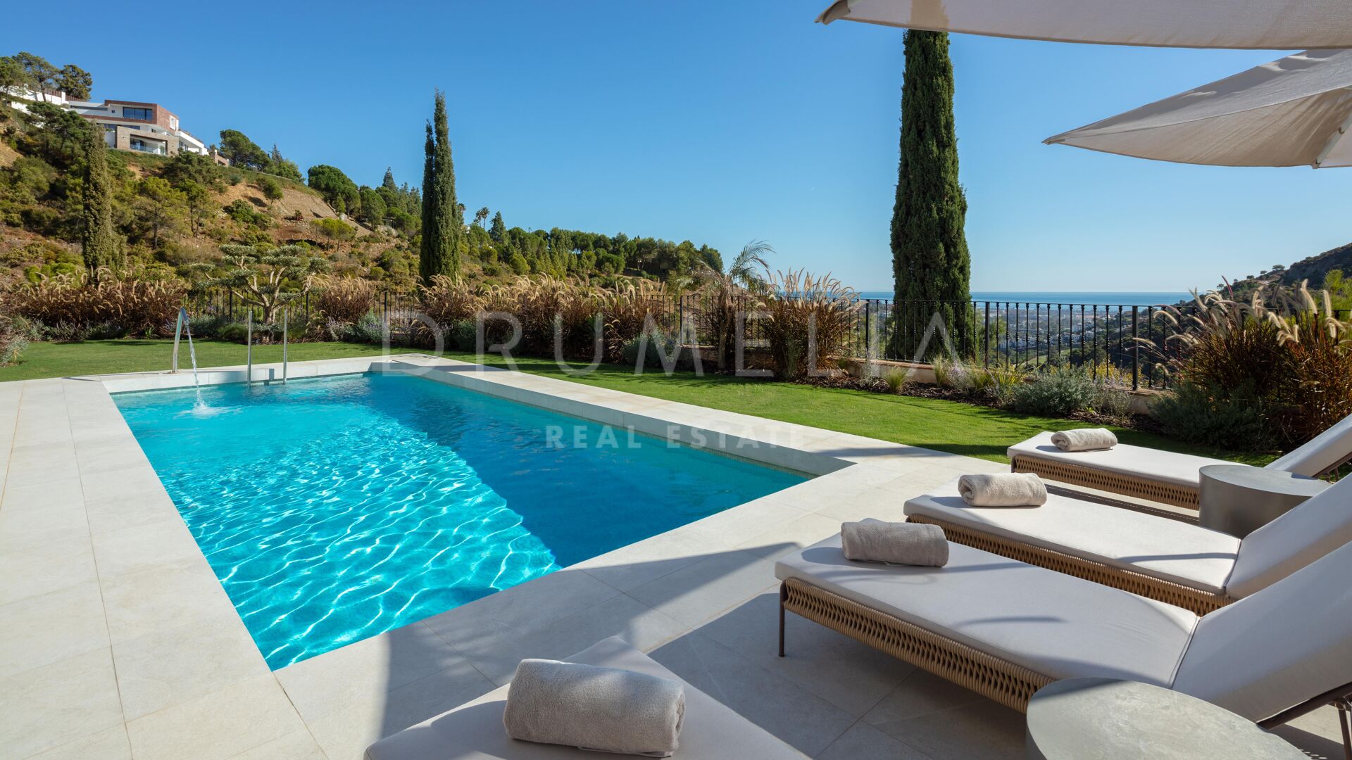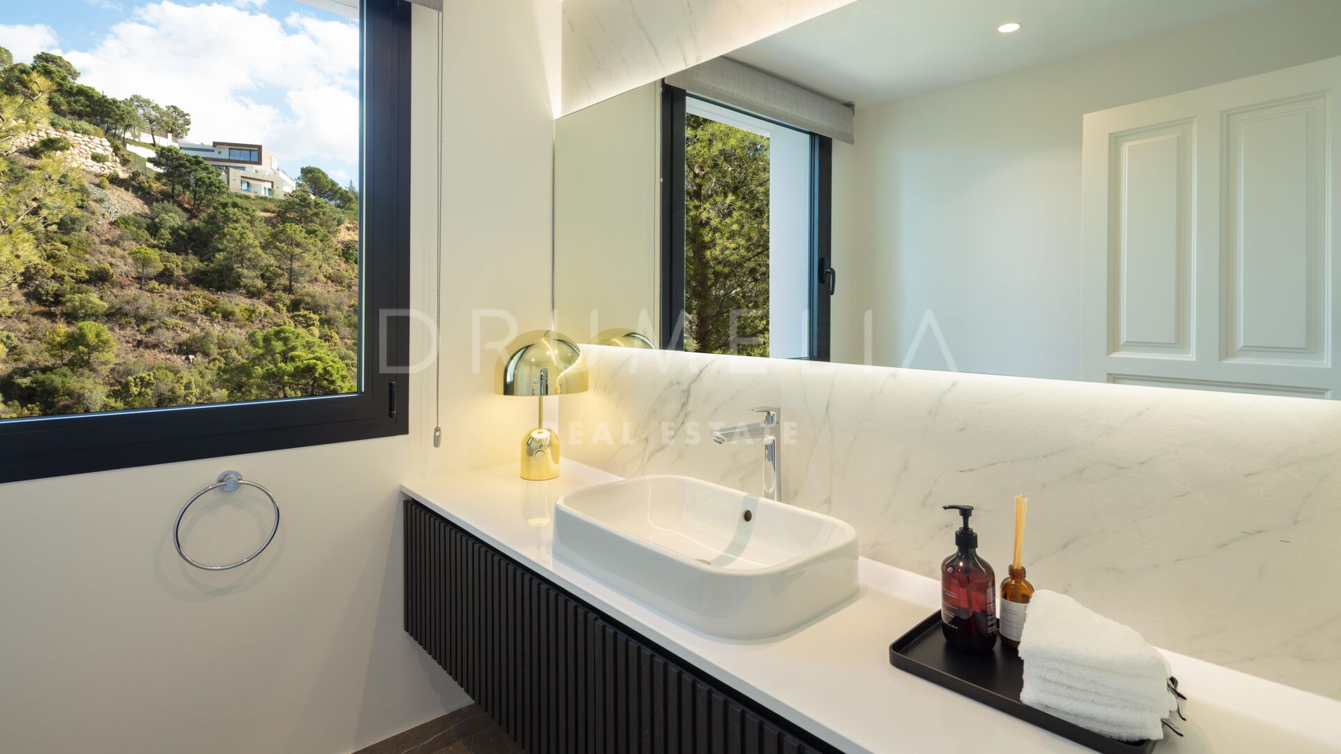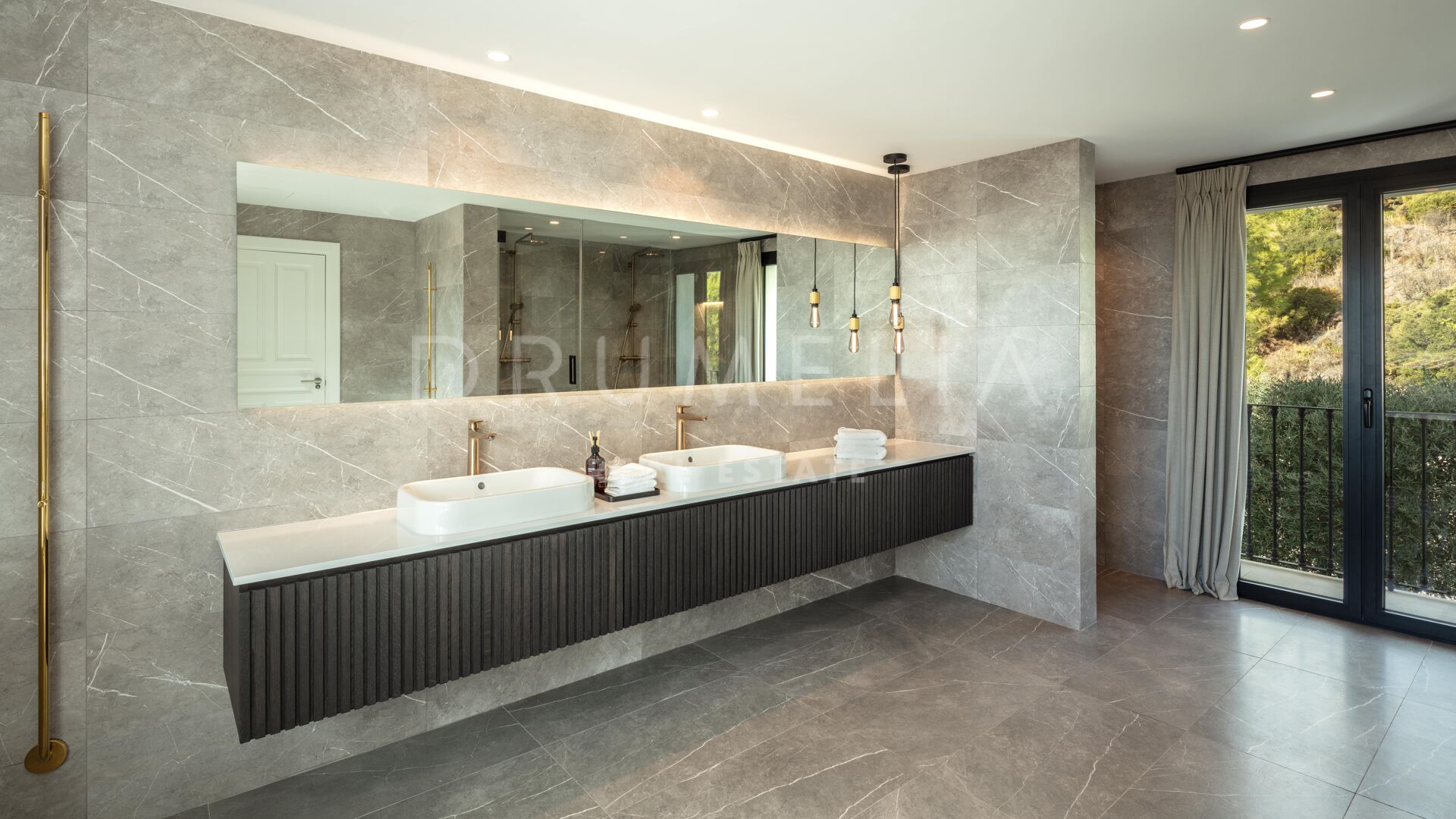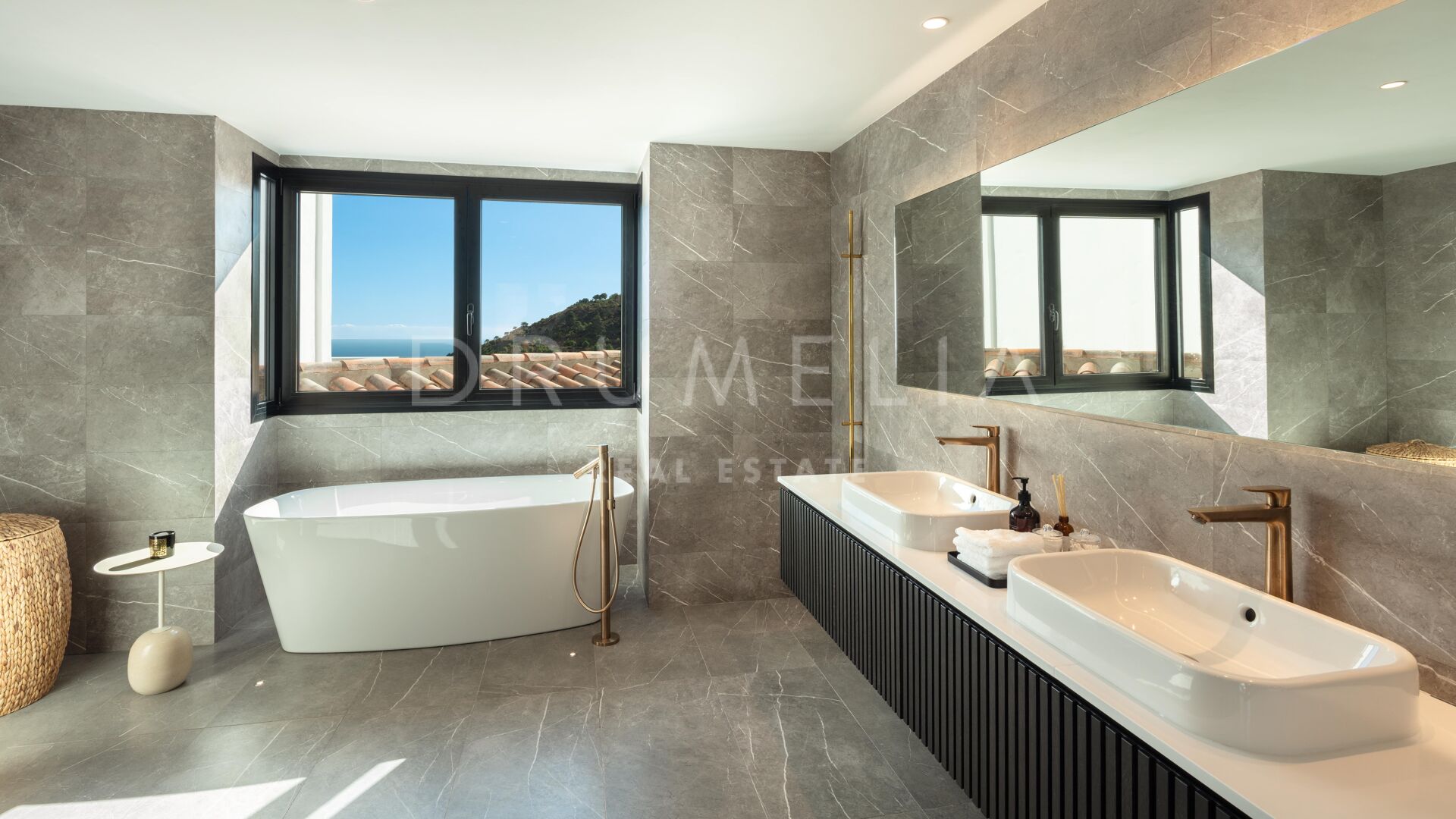 Surrounded by verdant forests of cork and pine trees that ensure privacy and security for the owners, the magnificent 5-bedroom house of 596 m² has a large plot of 4.017 m² and 175-m² terraces. Combining Andalusian architecture with Mediterranean touches and a modern vibe, this estate has been designed with great attention to detail and impeccable taste. Due to its privileged elevated position and orientation toward the south, the house has stunning panoramic sea and mountain views.