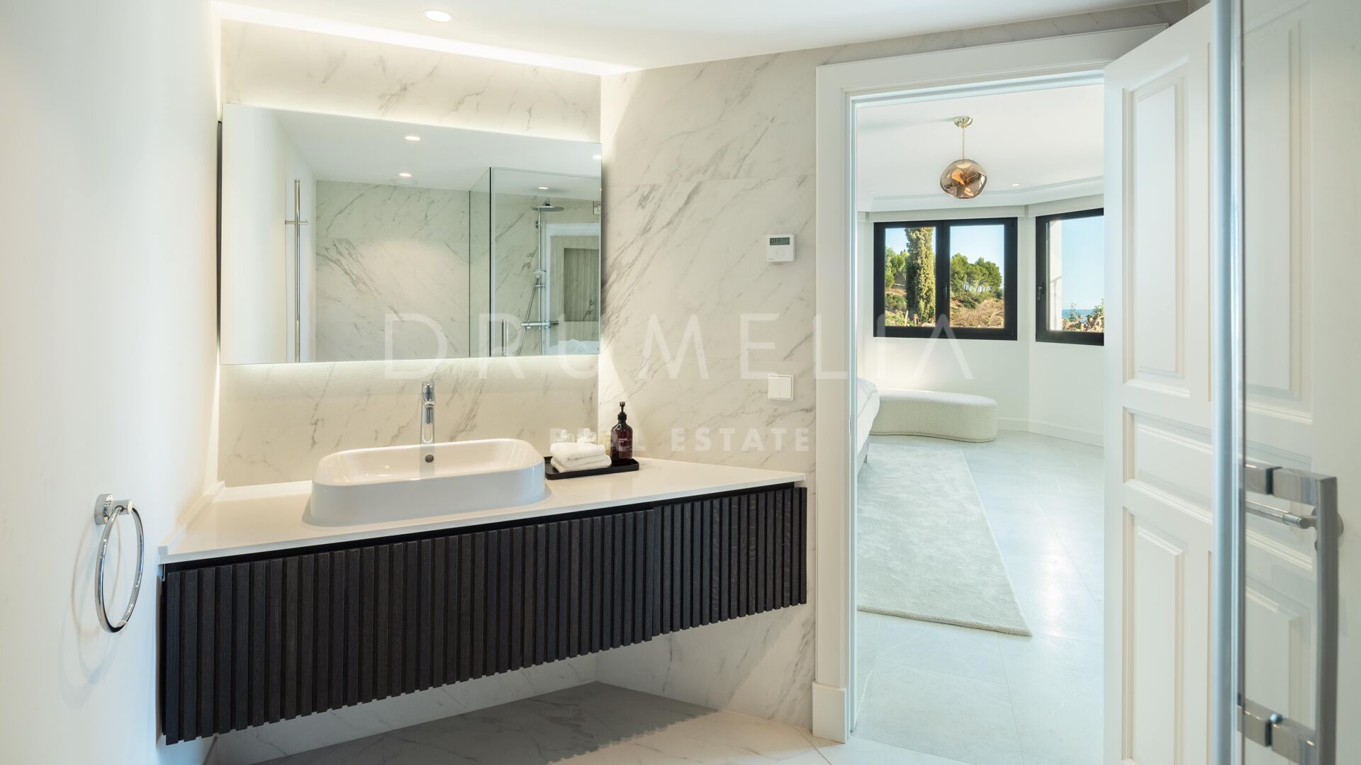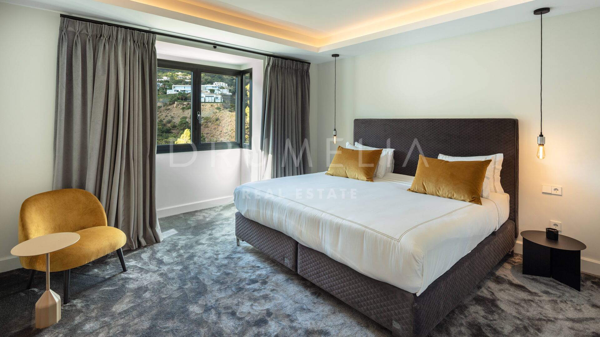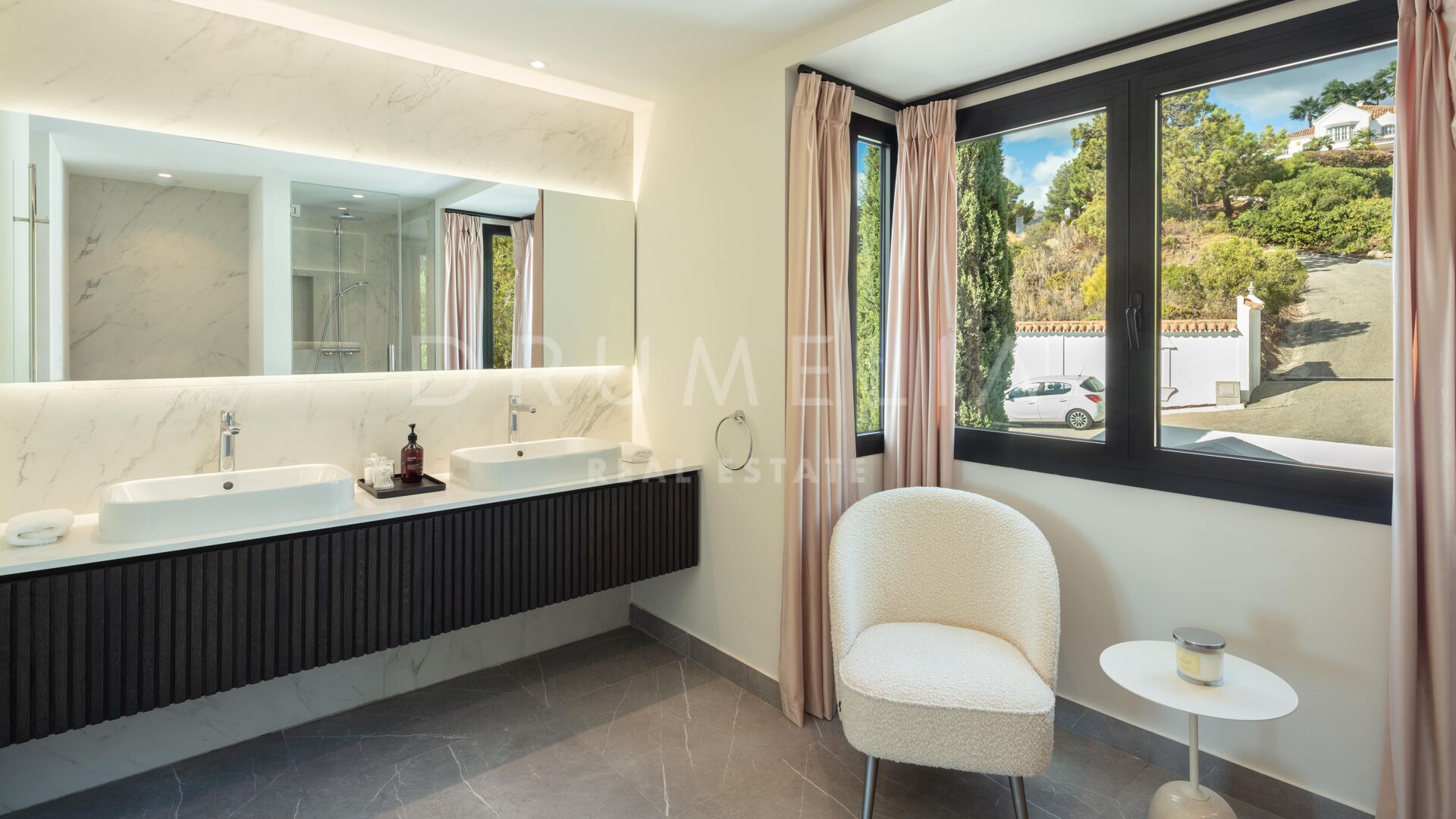 Surrounded by verdant forests of cork and pine trees that ensure privacy and security for the owners, the magnificent 5-bedroom house of 596 m² has a large plot of 4.017 m² and 175-m² terraces. Combining Andalusian architecture with Mediterranean touches and a modern vibe, this estate has been designed with great attention to detail and impeccable taste. Due to its privileged elevated position and orientation toward the south, the house has stunning panoramic sea and mountain views.