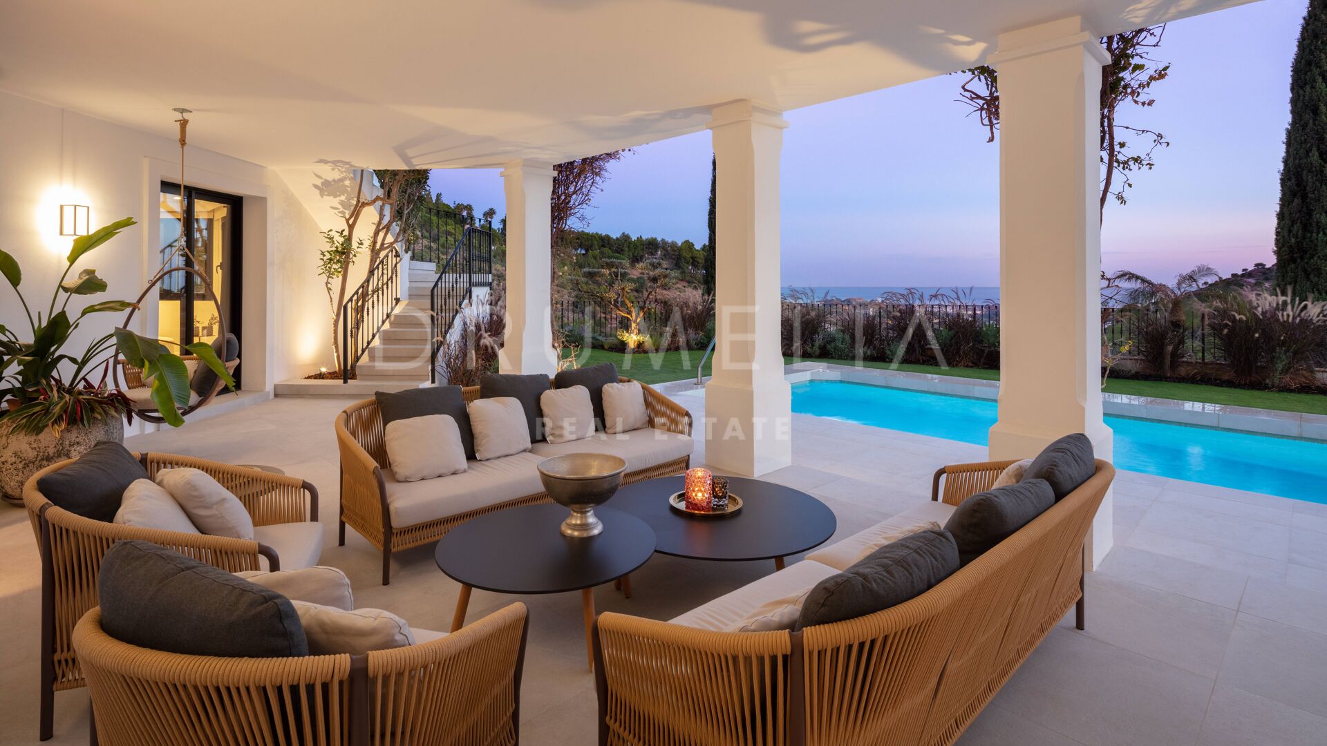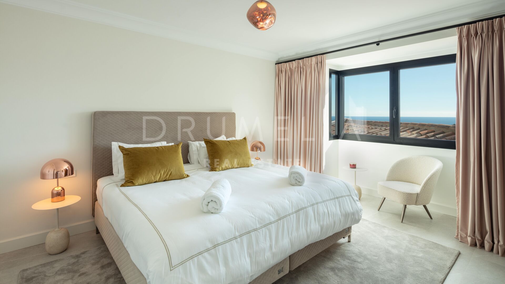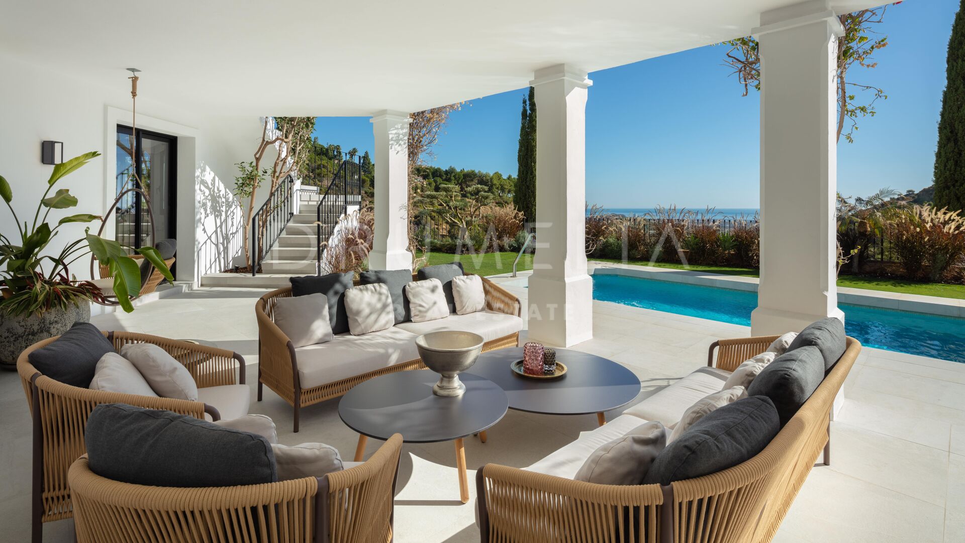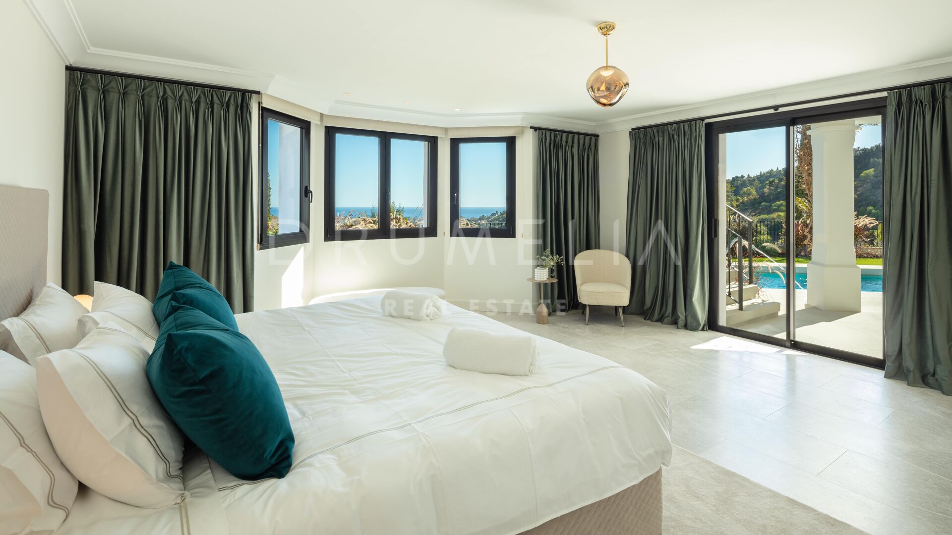 Surrounded by verdant forests of cork and pine trees that ensure privacy and security for the owners, the magnificent 5-bedroom house of 596 m² has a large plot of 4.017 m² and 175-m² terraces. Combining Andalusian architecture with Mediterranean touches and a modern vibe, this estate has been designed with great attention to detail and impeccable taste. Due to its privileged elevated position and orientation toward the south, the house has stunning panoramic sea and mountain views.