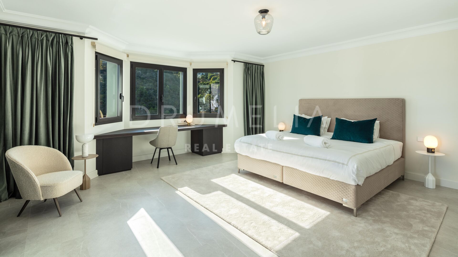 This amazing luxury mansion in El Madroñal appeals to discerning buyers looking for an exclusive peaceful countryside retreat, yet within very easy reach of all adventures of Puerto Banus and amenities of Marbella.