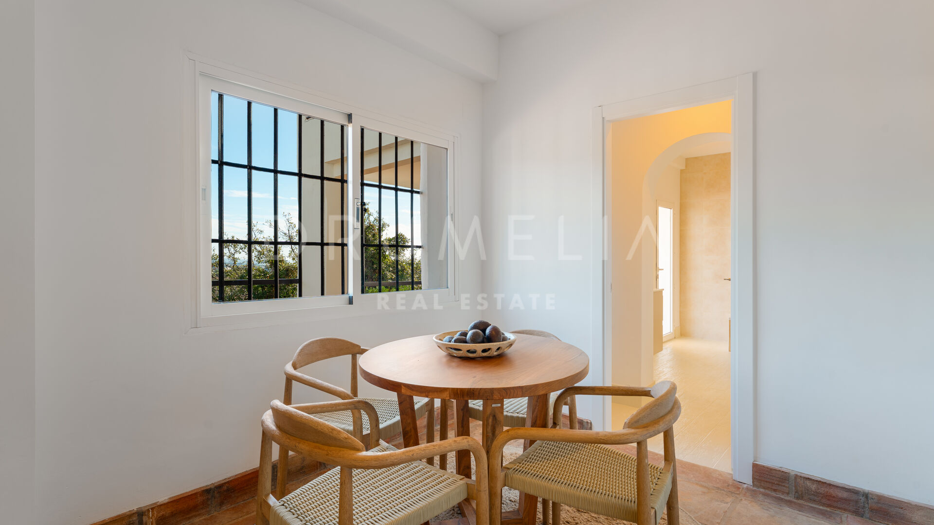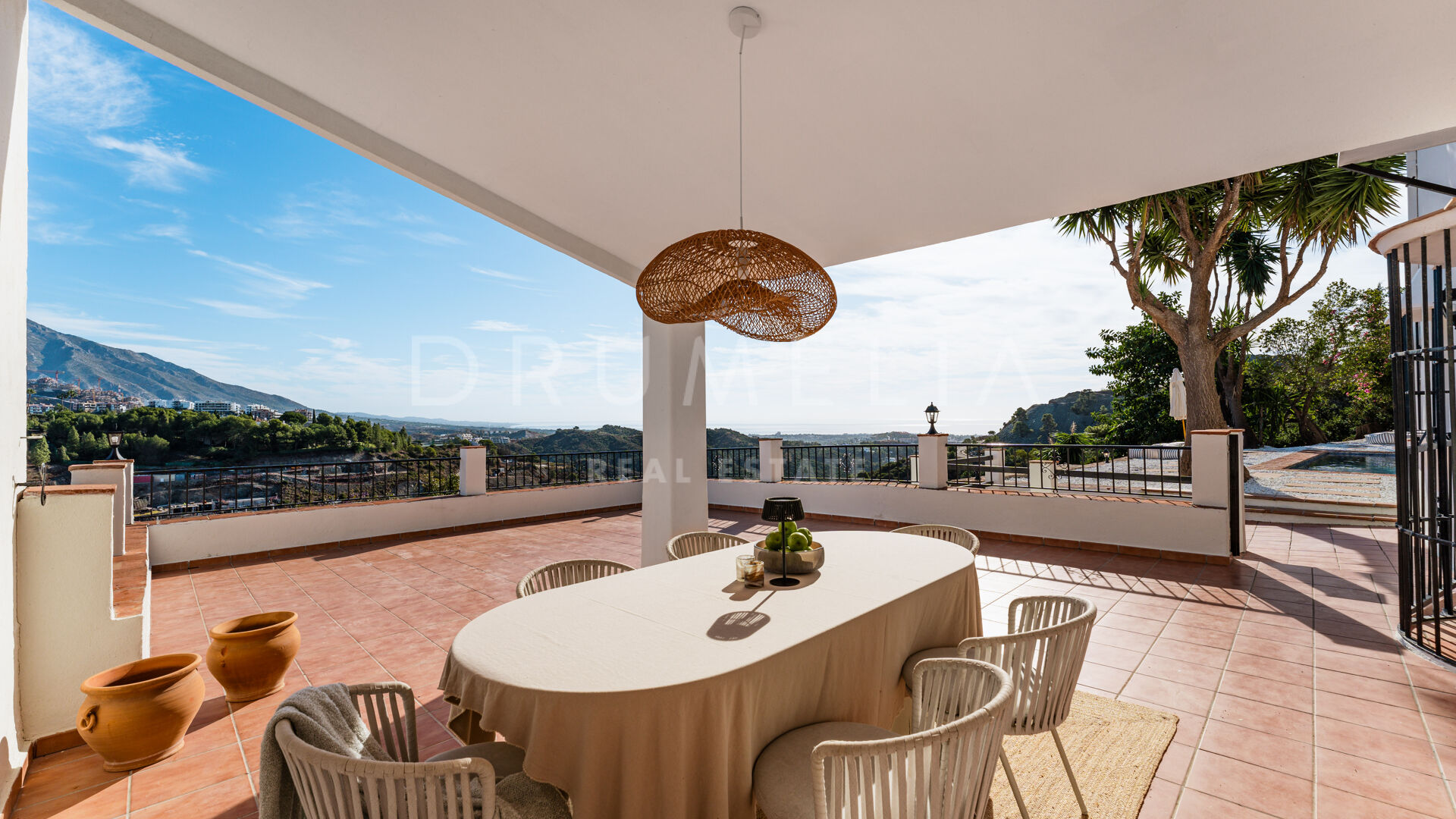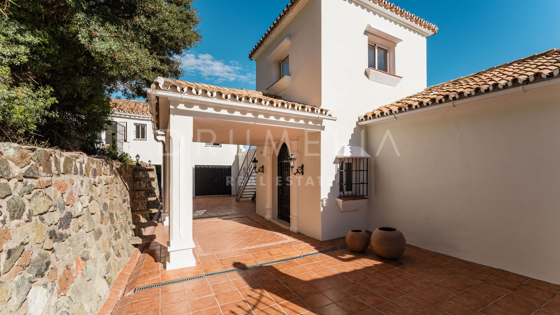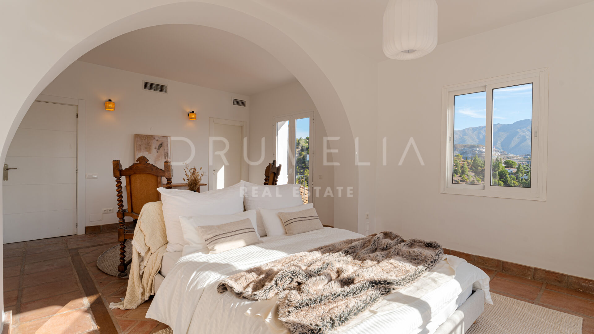 This beautifully presented Andalusian-style villa is located in the exclusive gated community of El Madroñal 2 in Benahavís. Set on an elevated 4,795 m² plot, the property offers complete privacy and panoramic sea and mountain views. With 531 m² of built space, the home blends traditional charm with modern comfort, featuring six bedrooms, five en-suite bathrooms and bright living areas that open to multiple terraces overlooking the natural surroundings.