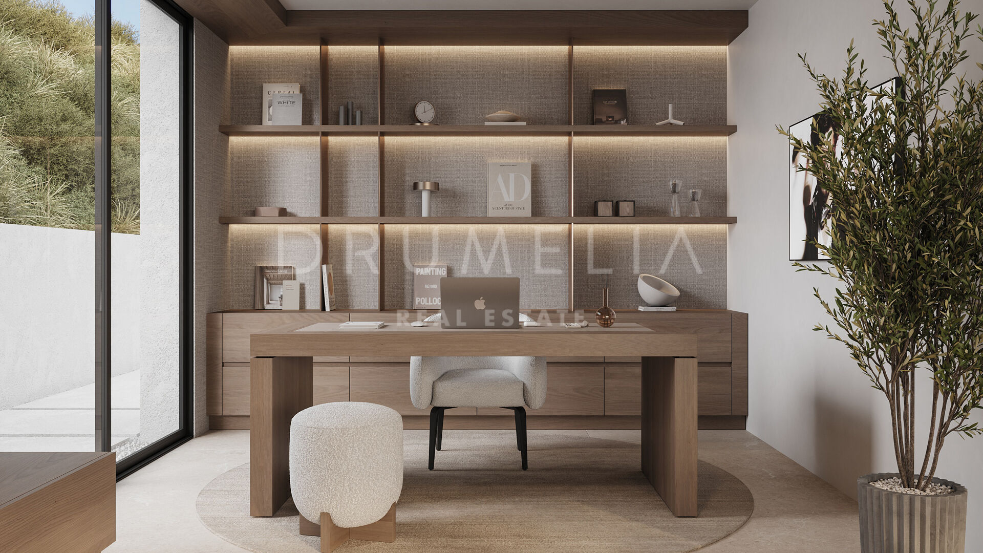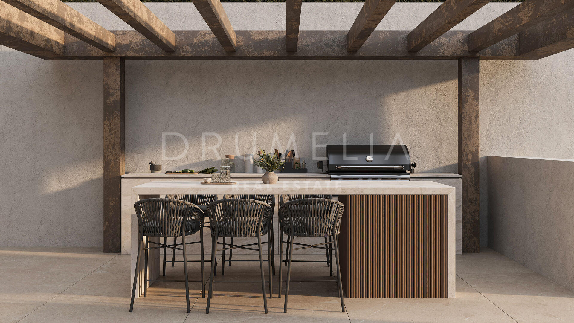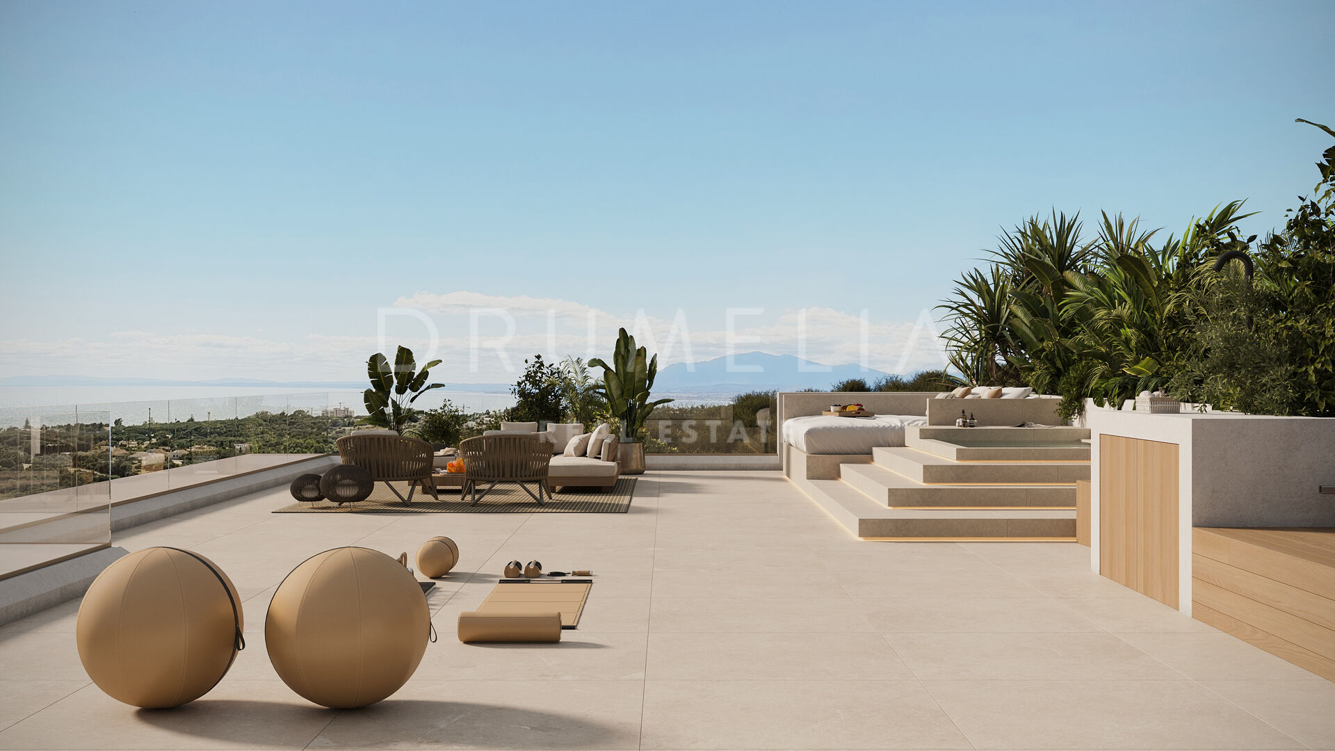 Nestled in the picturesque neighborhood of Elviria in Marbella East, this stunning new villa is a masterpiece of architectural elegance and modern luxury. Designed by renowned architect Francisco Martínez Galván and developed by Homerun Desarrollos, the residence spans three thoughtfully planned floors, offering 454 square meters of beautifully crafted interior space. An expansive 621-square-meter terrace seamlessly blends indoor and outdoor living, creating the perfect retreat in this serene coastal setting.