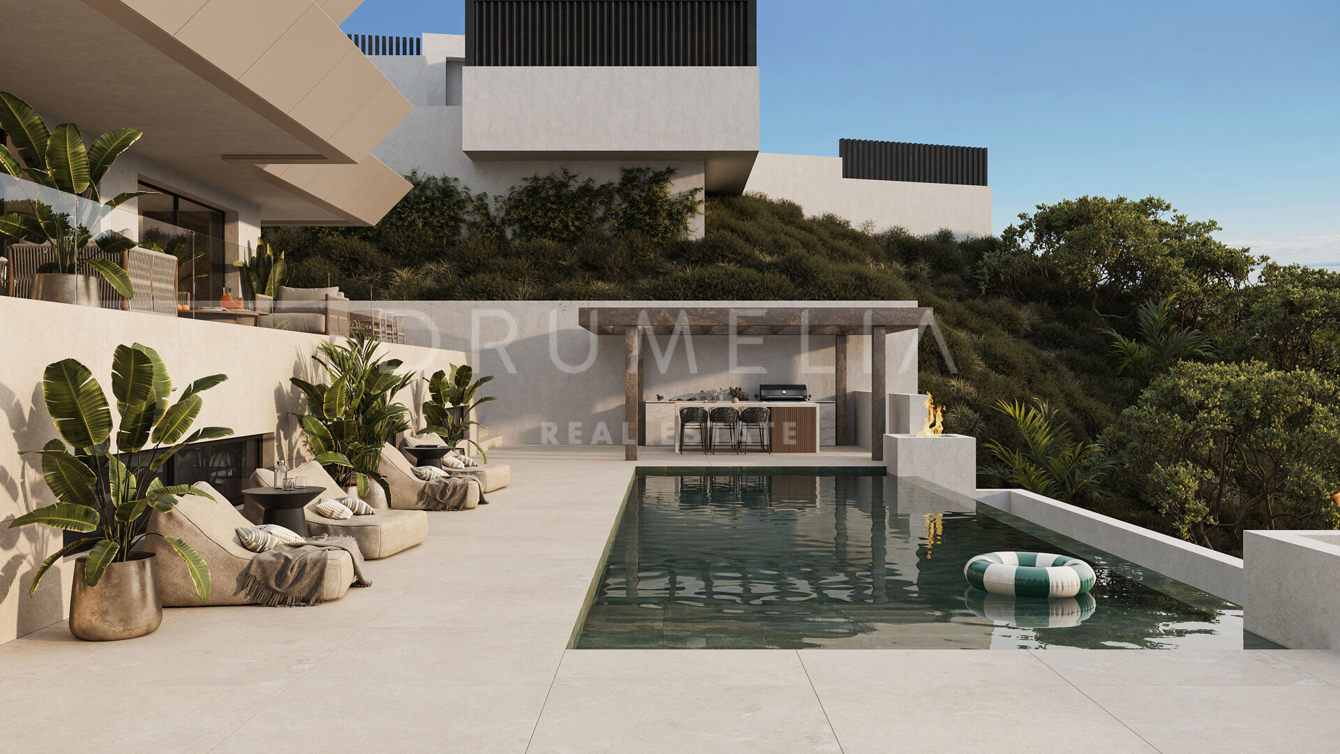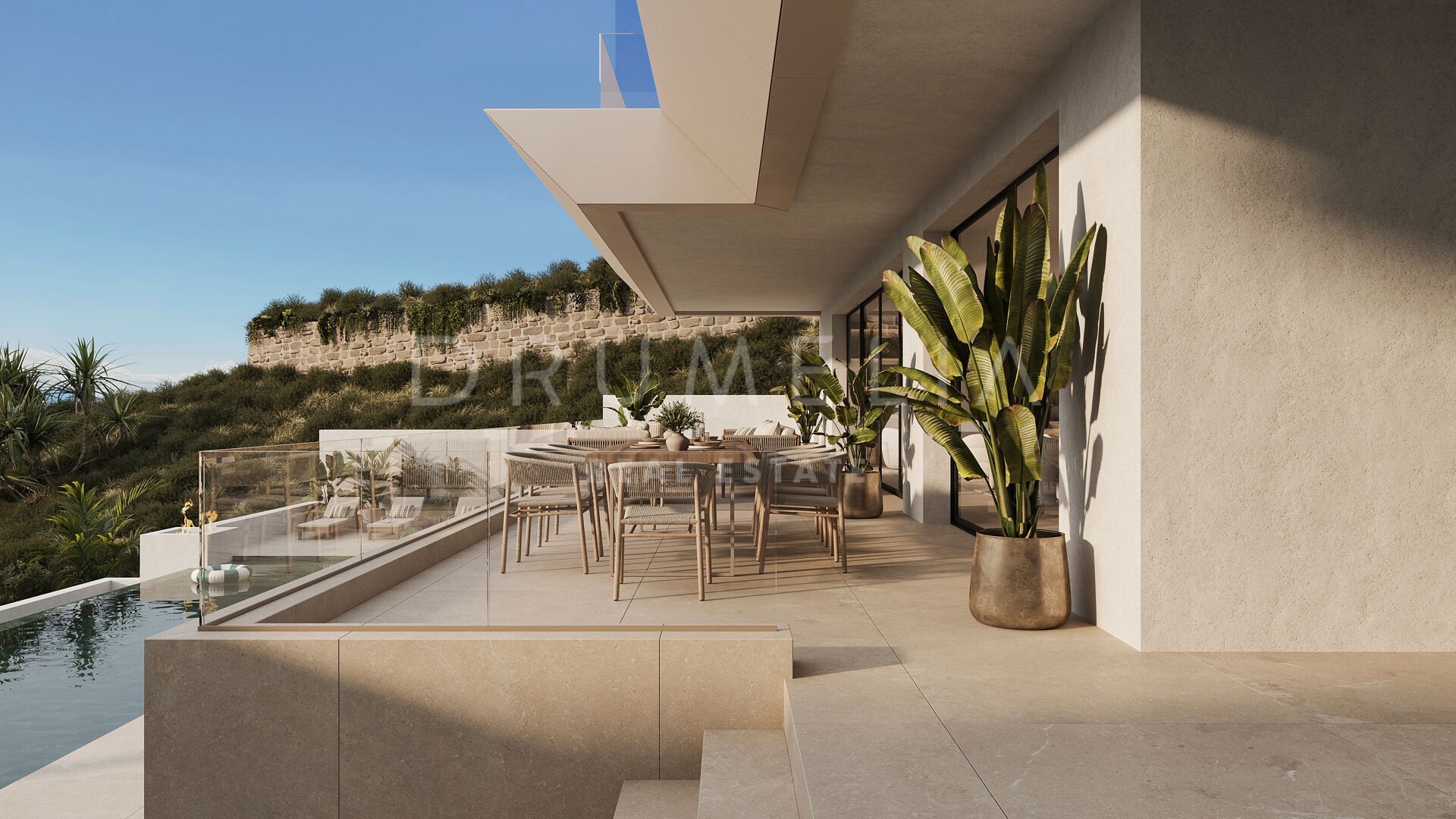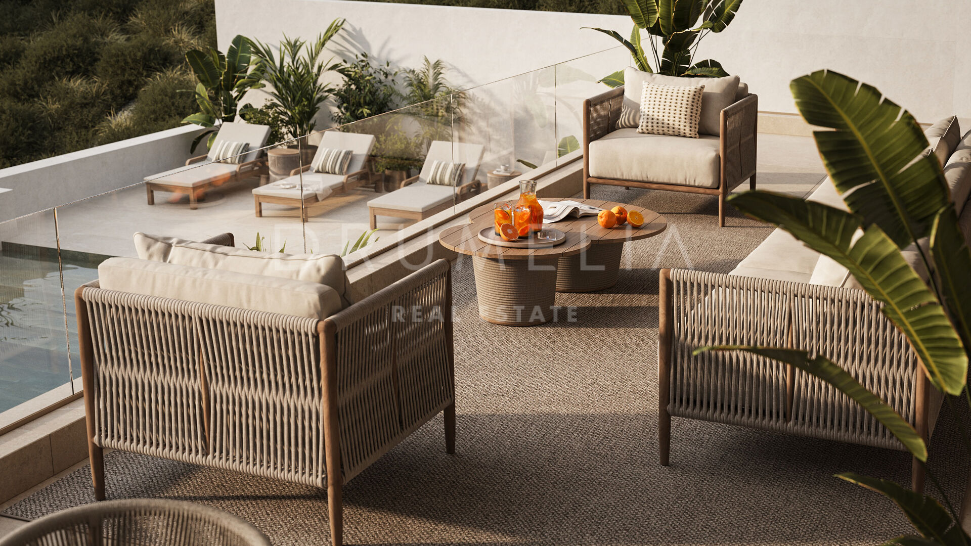 Nestled in the picturesque neighborhood of Elviria in Marbella East, this stunning new villa is a masterpiece of architectural elegance and modern luxury. Designed by renowned architect Francisco Martínez Galván and developed by Homerun Desarrollos, the residence spans three thoughtfully planned floors, offering 454 square meters of beautifully crafted interior space. An expansive 621-square-meter terrace seamlessly blends indoor and outdoor living, creating the perfect retreat in this serene coastal setting.
