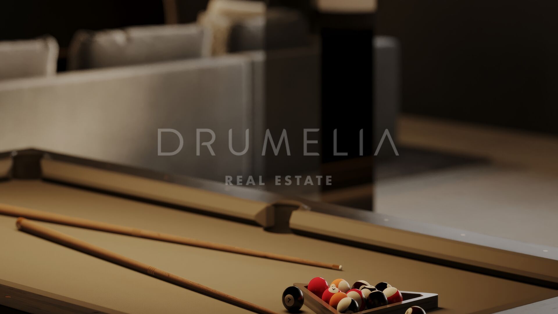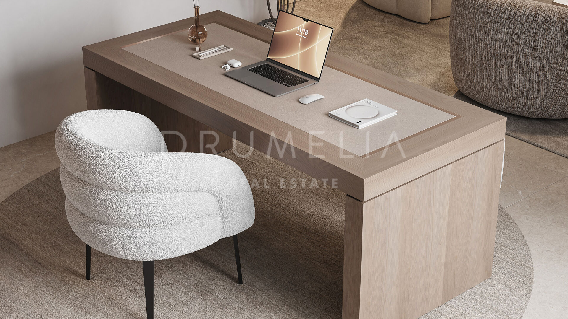 Every detail of this residence exudes sophistication, from the elegant oak flooring to the large-format porcelain tiles. High-end appliances from GAGGENAU and SIEMENS elevate the kitchen and living spaces, while luxurious amenities such as a private gym, a heated swimming pool, and a dedicated cinema room cater to both relaxation and entertainment. Fully furnished in a sleek contemporary style, the home is ready for immediate move-in, with the furniture available for purchase separately. A private garage ensures convenient parking, completing the effortless lifestyle that this exceptional villa offers.