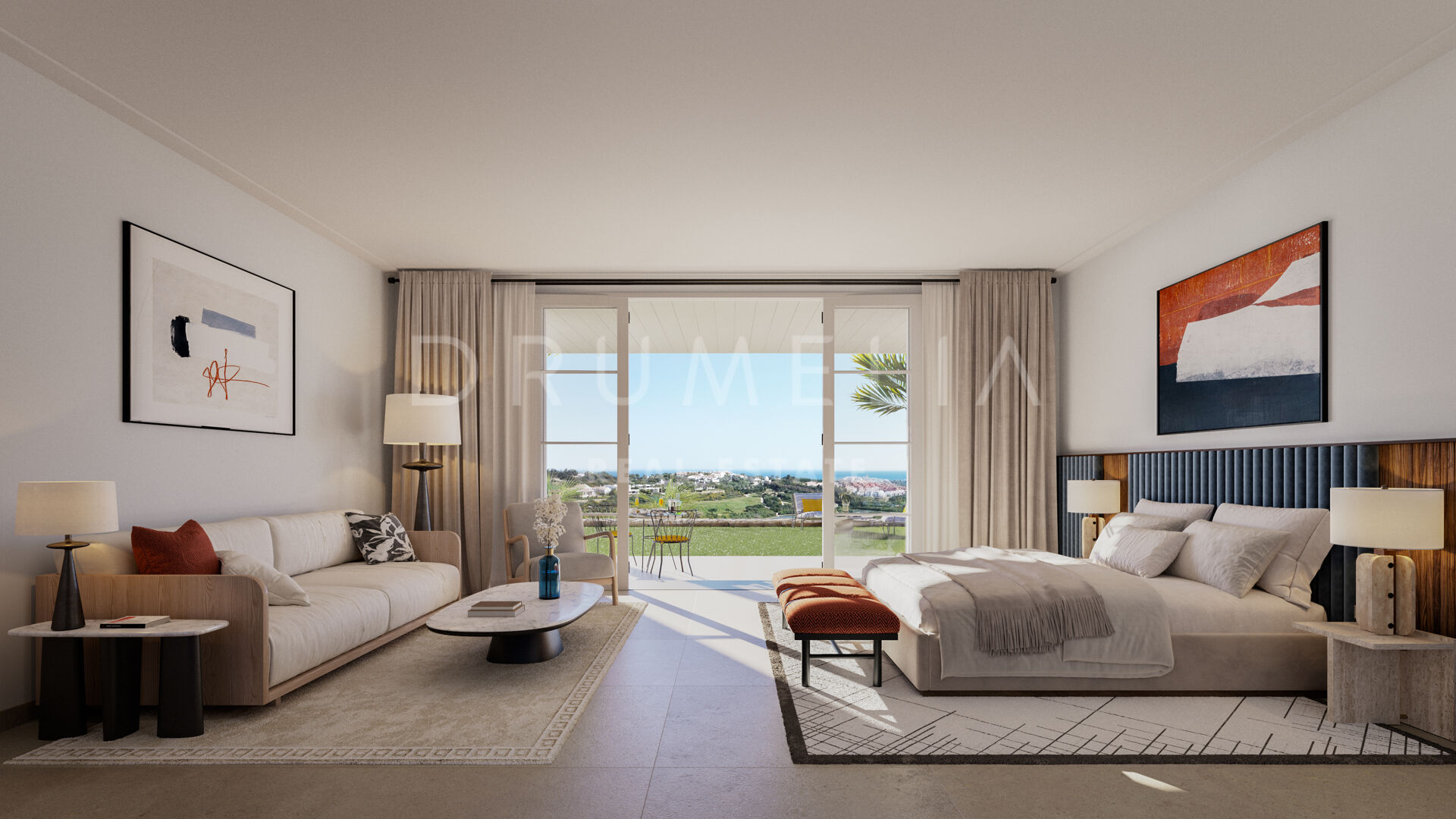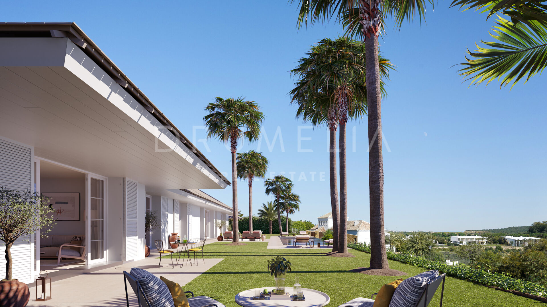 This brand-new 4-bedroom luxury villa for sale in the heart of the Costa del Sol, offers a new concept of modern luxurious life in the high-end area of Finca Cortesin Golf Resort, Casares. Scheduled for completion in summer 2025, it presents an exceptional opportunity with its front-line golf position, intriguing architecture, refined interiors and ample plot with breath-taking views. The exclusive gated community is set on a 215-hectare estate and surrounded by undisturbed nature. It offers an award-winning hotel, luxurious real estate, championship golf course, spa and fitness facilities, beach club and shopping area. The resort’s location gives an easy access to the beach and all services and amenities that you may need. Marbella, Estepona, Puerto Banús and Sotogrande are just a short drive away; Malaga airport is less than an hour; Gibraltar is just 15 minutes away.