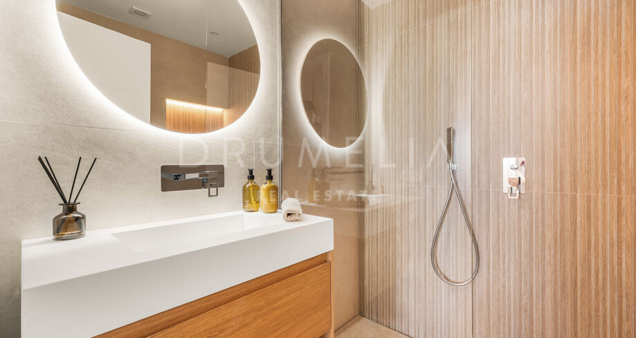 Set within Jardines de Andalucía, the property offers 85 m² of interior space complemented by a 33 m² private covered terrace oriented towards La Concha. The terrace functions as a true outdoor living area, with enough depth for both lounge and dining, and uninterrupted views of the mountain and surrounding greenery.